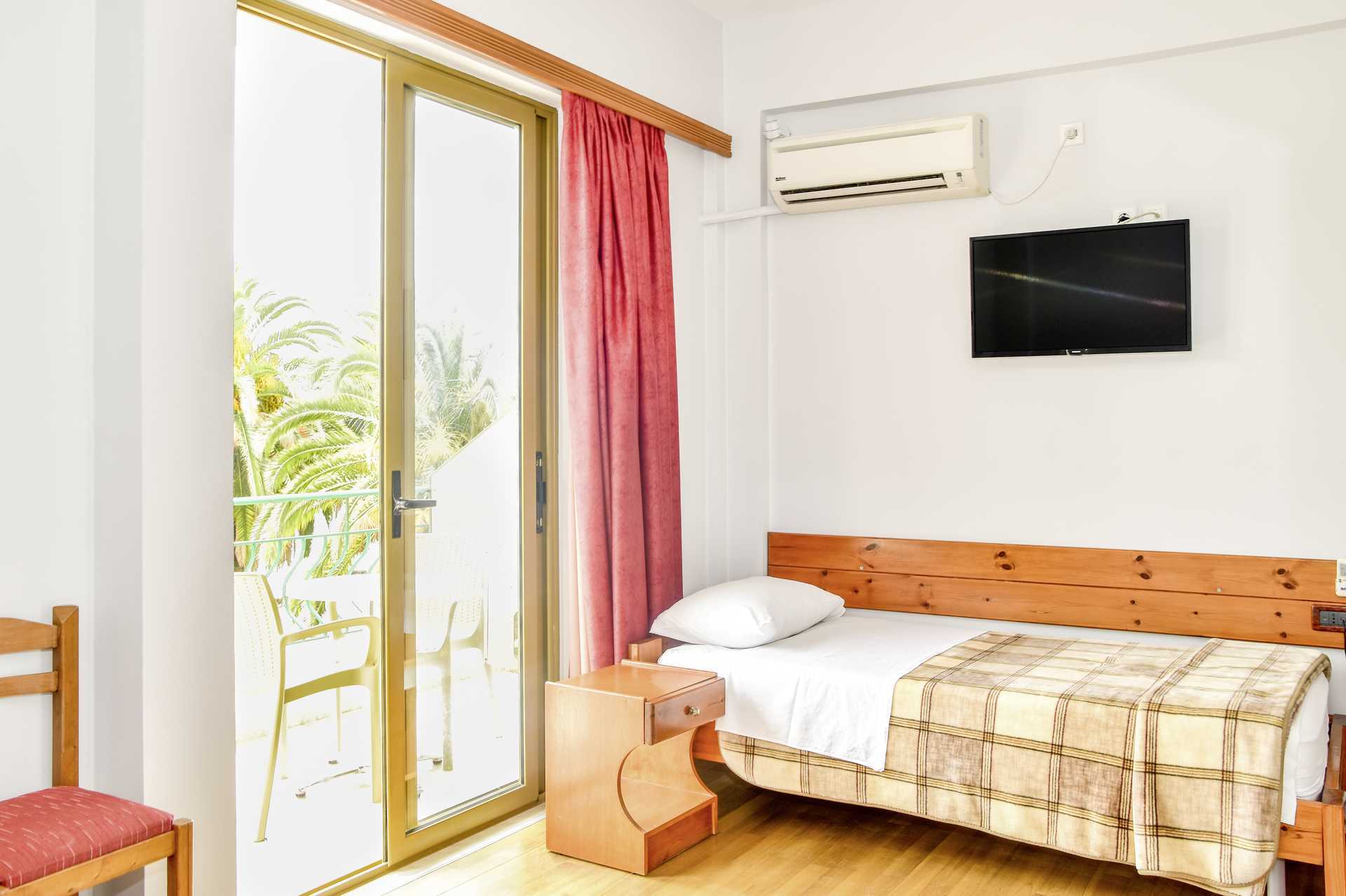Tweepersoonskamer met balkon, sommige met zeezicht of beperkt zeezicht. Een tweepersoonsbed of twee éénpersoonsbedden. Mogelijkheid voor extra bed in éénpersoonsbed en/of opklapbed. Wifi, kluisje en airconditioning inbegrepen. Koelkast. Tv met internationale zenders. Föhn. Badkamer met douche en toilet. Schoonmaak 7 keer / week.