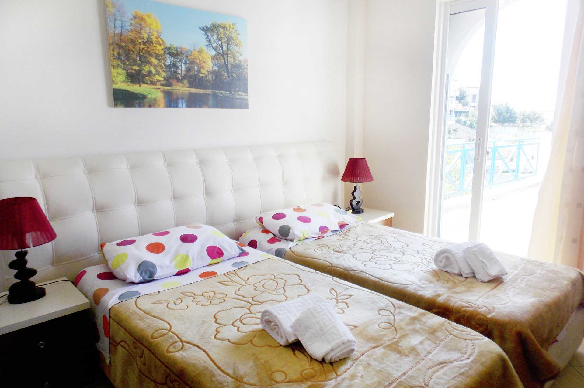 Familiekamers met balkons van verschillende groottes en met uitzicht op zee. Eén tweepersoonsbed en twee eenpersoonsbedden of een stapelbed. Wifi en airconditioning inbegrepen. Kluisje tegen betaling. Koelkast. Tv met internationale zenders. Föhn. Badkamer met douche en toilet. Schoonmaak 7 keer/week.