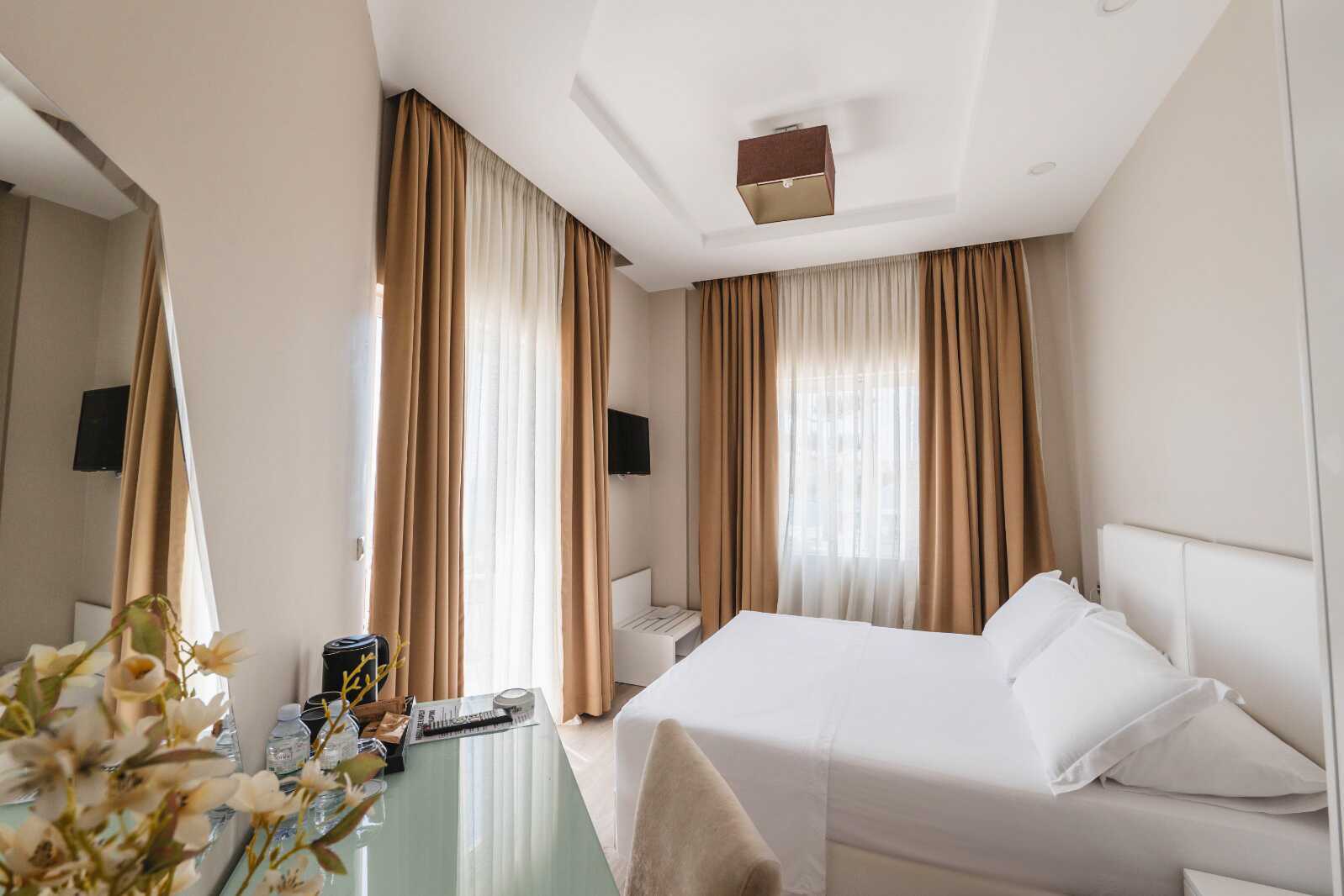 Tweepersoonskamer met balkon, sommige met zeezicht of beperkt zeezicht. Een tweepersoonsbed of twee eenpersoonsbedden. Mogelijkheid voor extra bedden in een slaapbank. Wifi, airconditioning en kluis inbegrepen. Koelkast. Waterkoker. Tv met internationale zenders. Föhn. Badkamer met douche en toilet. Schoonmaak 7 keer / week.