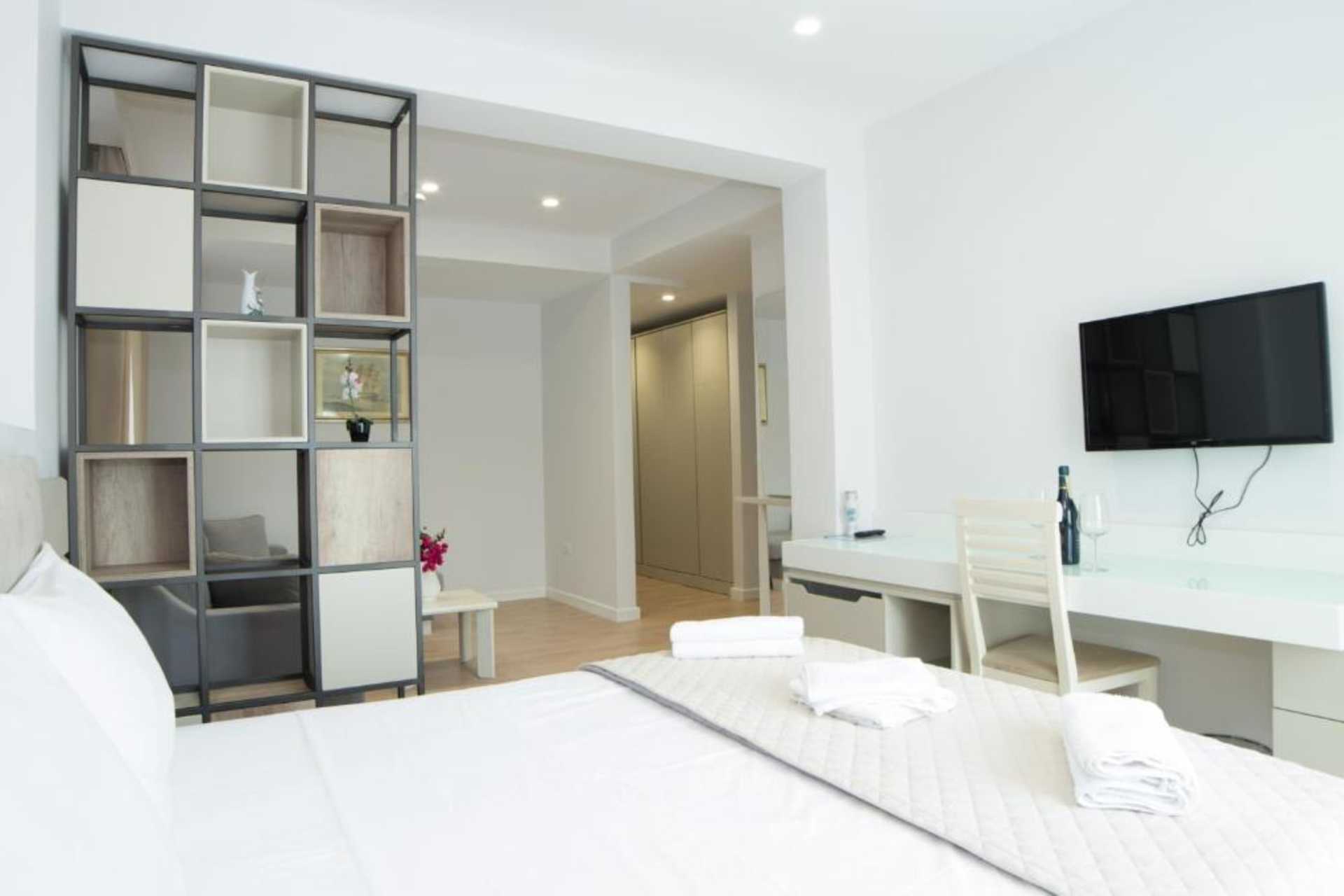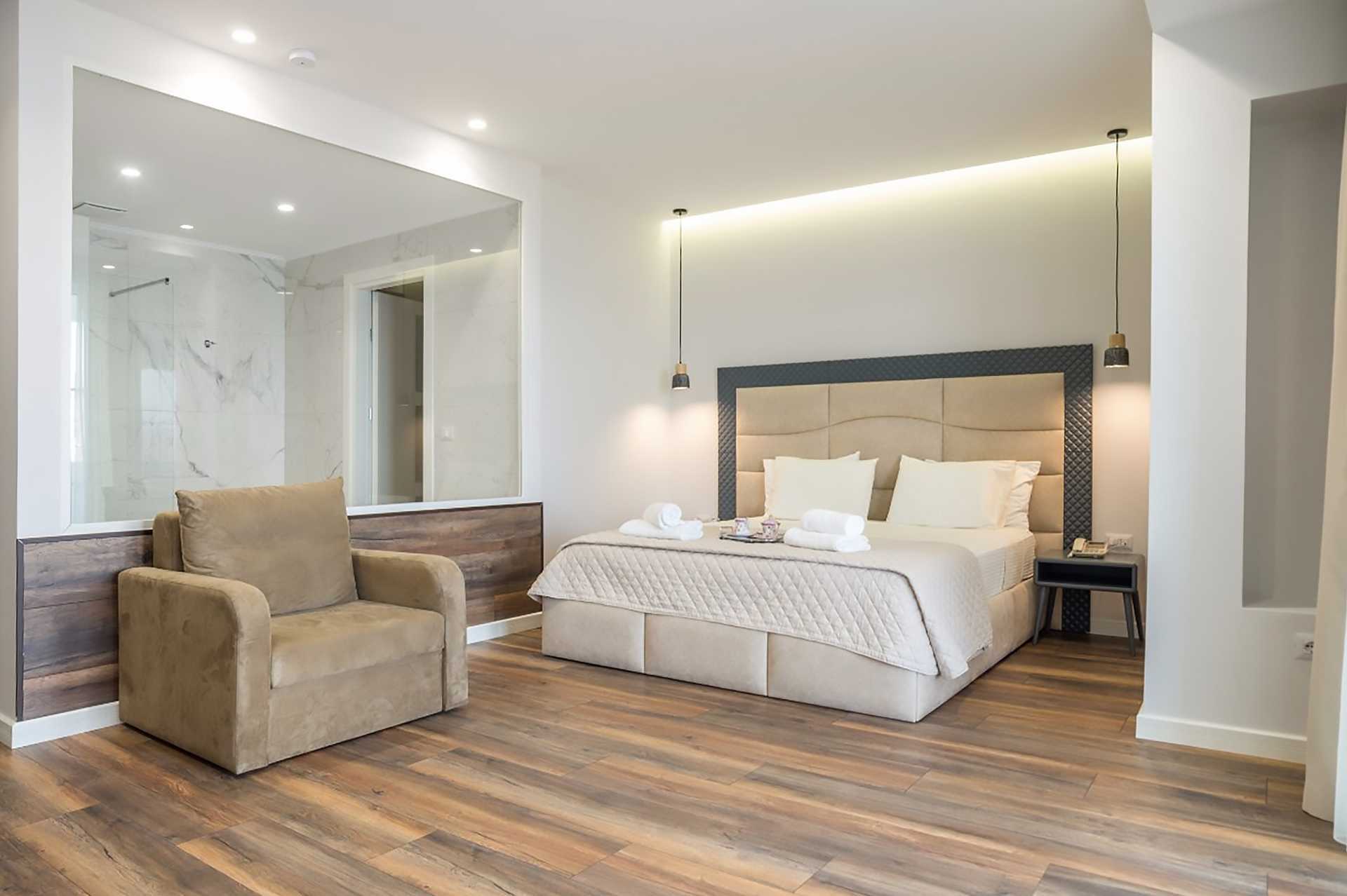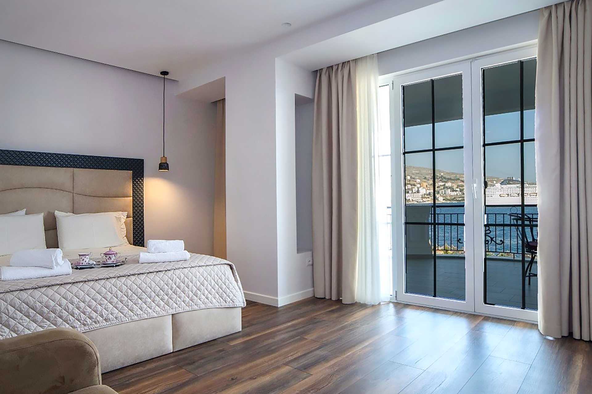 Superior kamer met balkon, sommige met zeezicht en sommige met beperkt zeezicht. Een tweepersoonsbed. Mogelijkheid voor een extra bed in de vorm van een slaapbank. Koelkast. Badkamer met douche en toilet. Schoonmaak 7 keer / week.