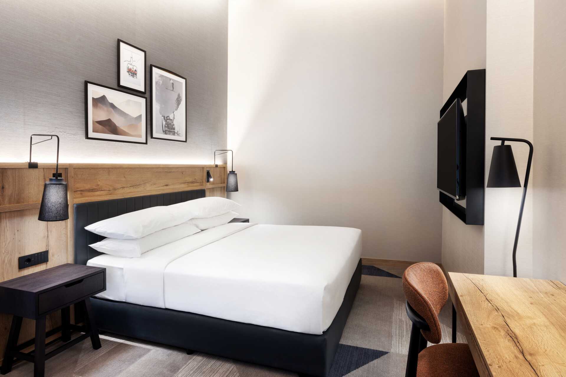 Tweepersoonskamer met balkon Een tweepersoonsbed. Mogelijkheid voor een extra bed op de slaapbank. Wifi, kluisje en verwarming via airconditioning zijn inbegrepen. Minibar. Waterkoker en koffie en thee. Tv met internationale zenders. Vloerbedekking. Strijkijzer en strijkplank. Föhn. Badkamer met douche en toilet. Schoonmaak 6 keer/week.