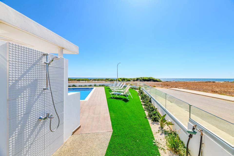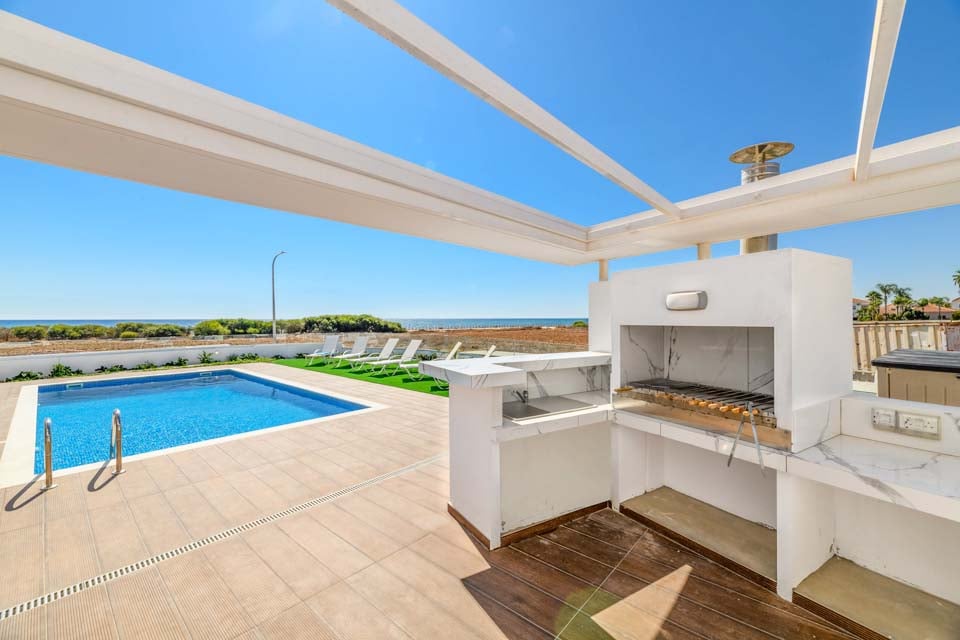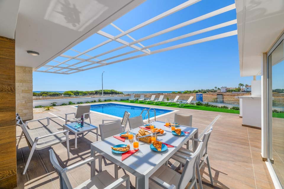 Stap naar buiten en laat u betoveren door het ruime terras van de villa, waar de schoonheid van de Middellandse Zee zich voor u ontvouwt. Of u nu geniet van uw ochtendkoffie, geniet van de zon op een ligstoel of geniet van een diner in de buitenlucht terwijl de zon in de zee zakt: het terras is de ideale plek om te ontspannen. De serene tuin rondom de villa biedt nog meer ruimte om te ontspannen en te genieten van de rustige omgeving.