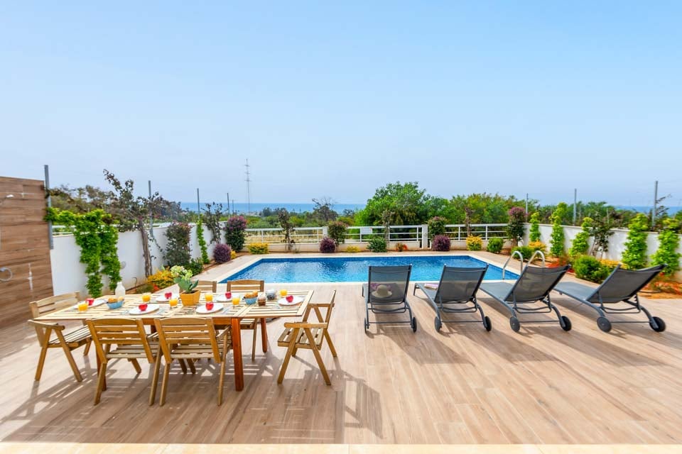 Het terras is ongetwijfeld de plek waar u de meeste tijd zult doorbrengen, met zijn zwembad met koel water, de mogelijkheid om buiten te eten en de ligstoelen. Geniet van een avondmaal onder de sterrenhemel met vrienden en familie, terwijl u geniet van lokale wijnen, smakelijke delicatessen en verse vis.