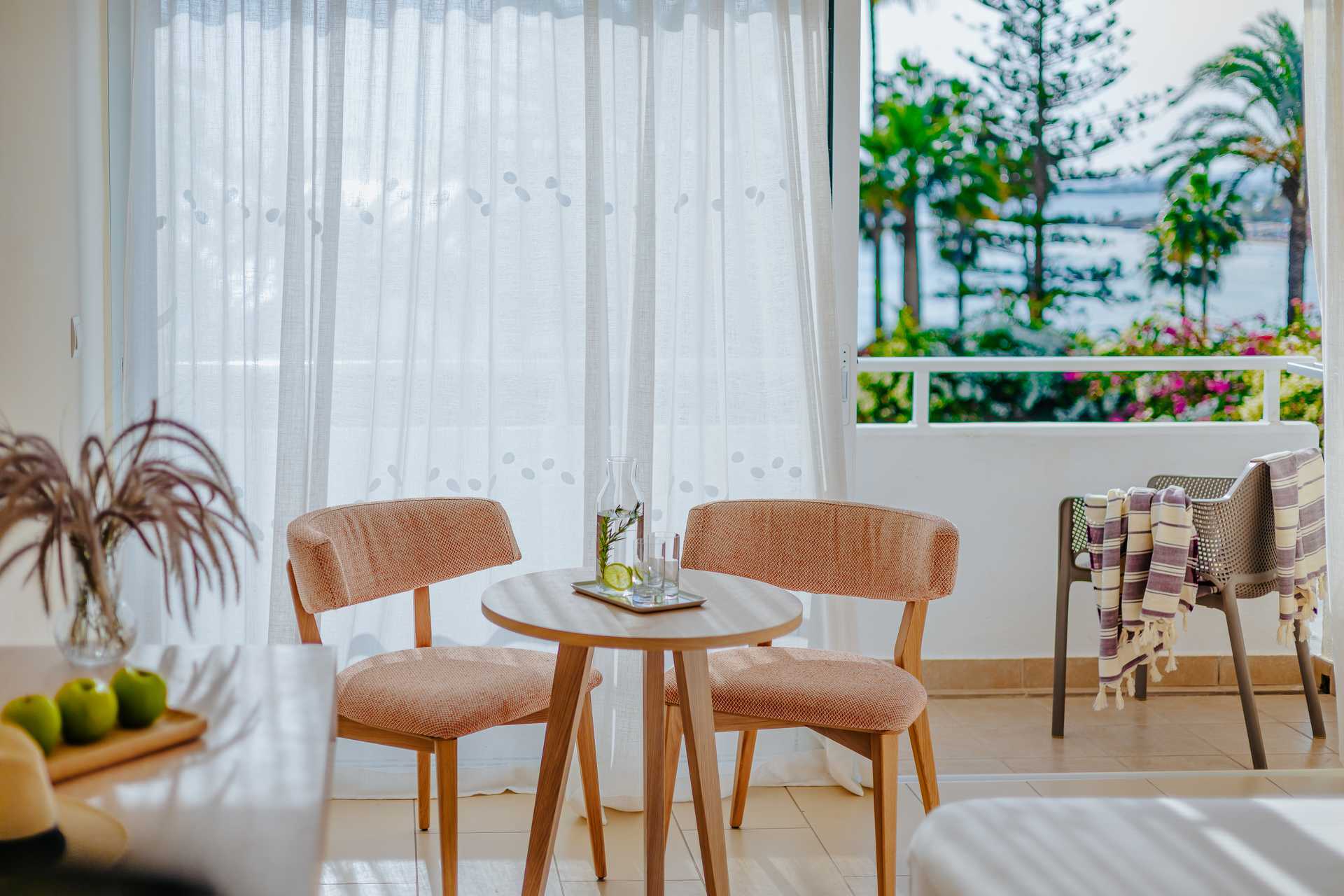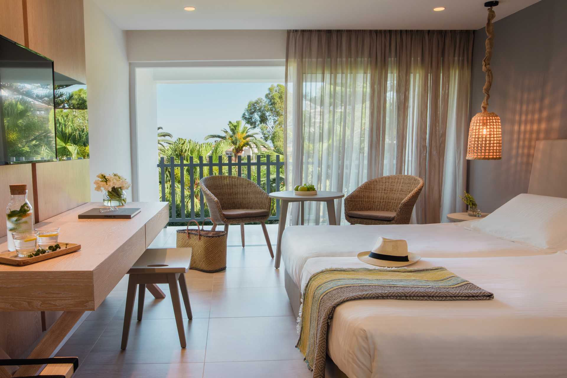 Superior kamer met balkon en uitzicht op zee. Twee eenpersoonsbedden. Mogelijkheid voor een extra bed in een eenpersoonsbed. Wifi, airconditioning en kluisje inbegrepen. Koelkast. Waterkoker en koffie en thee. Espressomachine. Tv met internationale zenders. Strijkijzer en strijkplank. Badjassen en hotelslippers. Badlakens Föhn. Badkamer met douche en toilet. Schoonmaak 7 keer/week. Kinderen jonger dan twee jaar zijn inbegrepen in het maximale aantal personen in de kamer.