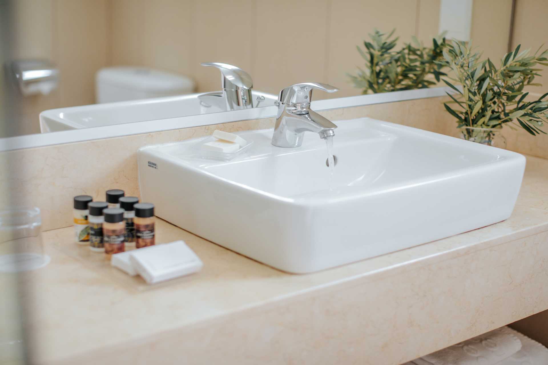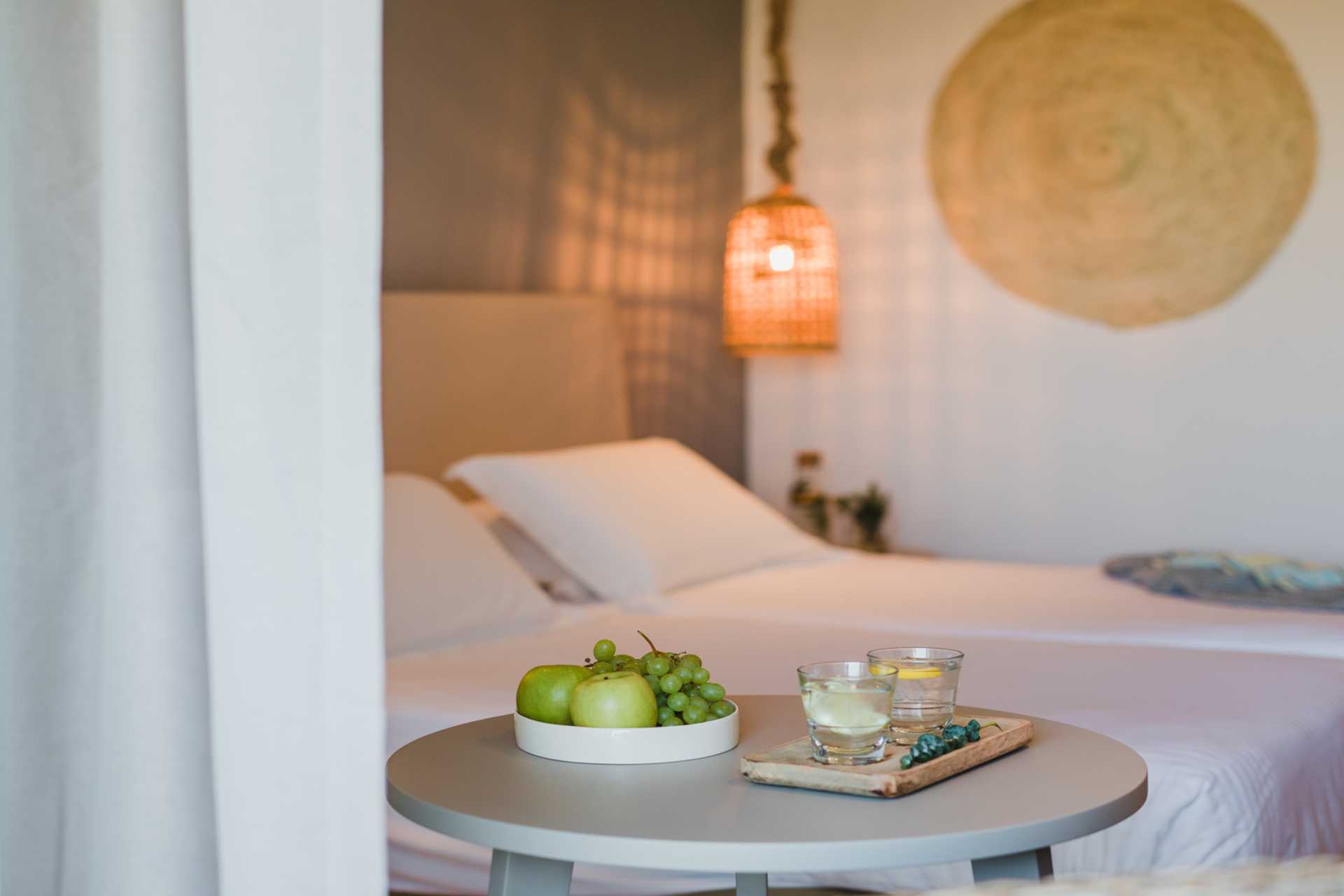 Tweepersoonskamer met terras of balkon, sommige balkons hebben uitzicht op zee. De tweepersoonskamers met zeezicht bevinden zich in het hoofdgebouw. Andere tweepersoonskamers bevinden zich in een gebouw achter het hoofdgebouw. Twee eenpersoonsbedden. Mogelijkheid voor een extra bed in een eenpersoonsbed. Wifi, airconditioning en kluisje inbegrepen. Koelkast. Waterkoker en koffie en thee. Tv met internationale zenders. Föhn. Badkamer met bad of douche en toilet. Schoonmaak 7 keer/week. Kinderen jonger dan twee jaar zijn inbegrepen in het maximale aantal personen in de kamer.