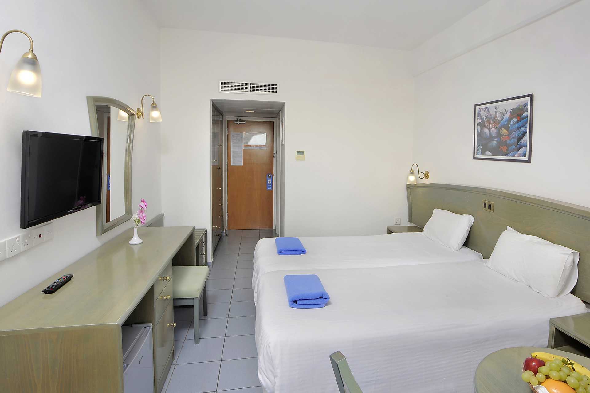Tweepersoonskamer met balkon, sommige met beperkt zeezicht. Twee eenpersoonsbedden. Mogelijkheid voor extra bed in een eenpersoonsbed. Houd er rekening mee dat de kamer druk kan aanvoelen als er drie personen in de kamer verblijven. Airconditioning en kluisje inbegrepen. Koelkast. Tv met internationale zenders. Föhn. Badkamer met douche en toilet. Schoonmaak 7 keer / week. Kinderen jonger dan twee jaar zijn inbegrepen in het maximum aantal personen op de kamer.