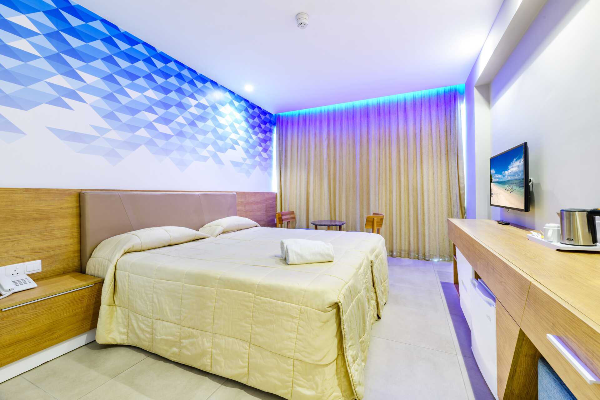 Superior kamer met balkon en zeezicht. Een tweepersoonsbed of twee eenpersoonsbedden. Mogelijkheid voor extra bed in opklapbed. Wifi, airconditioning en kluisje inbegrepen. Koelkast. Waterkoker en koffie en thee. Tv met internationale zenders. Strijkijzer en strijkplank. Föhn. Badkamer met douche en toilet. Schoonmaak 7 keer/week.