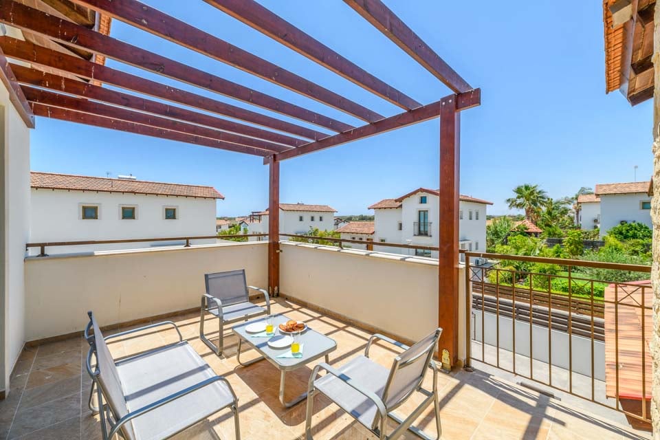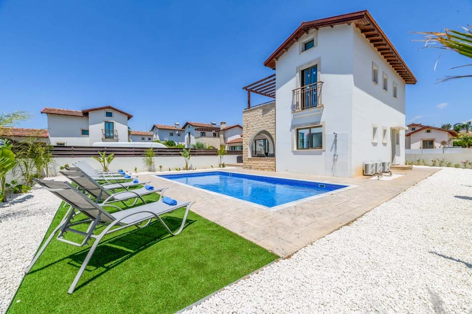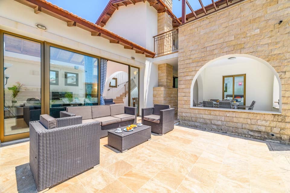 Geen enkele vakantie is compleet zonder een duik in een zwembad. En met uw eigen privézwembad kunt u dat doen wanneer u maar wilt. Het koele en verfrissende water ligt op slechts een steenworp afstand van de achterdeur en biedt een bron van waterplezier, ideaal om de verzengende middaghitte van Cyprus te vermijden. Profiteer van de warme zonnestralen door de zonnebril tevoorschijn te halen en lekker op een ligstoel bij het zwembad te liggen. Binnen een paar uur bent u prachtig bruin.