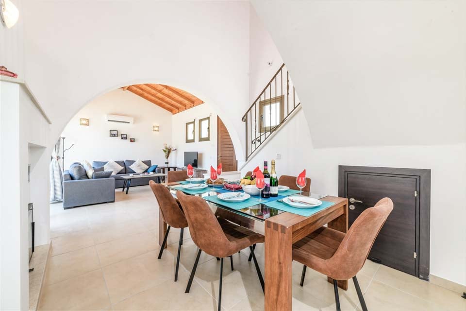 Als de hitte u te veel wordt, is het van airconditioning voorziene interieur van deze villa de beste plek om af te koelen. De woonkamer is luchtig, open, licht en helder. Ontspan in de comfortabele banken en geniet ervan. Maar als u eenmaal in de zachte kussens bent gezakt, wilt u misschien wel nooit meer opstaan! Als u de trap oploopt, geniet dan 's avonds van een drankje op het balkon en bewonder het adembenemende uitzicht. Daarna gaat u naar de gezellige en uitnodigende slaapkamers voor een verkwikkende nachtrust.
