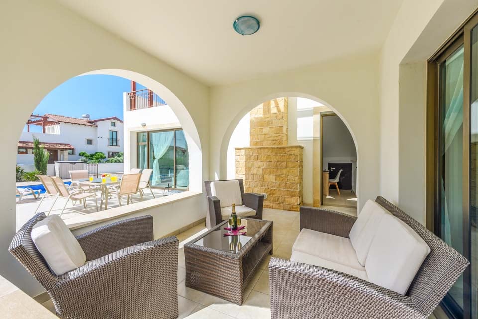 Onder de bogen van uw buitenterras vindt u uw nieuwe favoriete plekje in de buitenlucht. Of u nu geniet van een drankje bij zonsondergang in de zithoek met ligstoelen of 's avonds buiten eet, Kymma Villa creëert de perfecte setting voor onvergetelijke nachten onder de sterrenhemel. Breng uw dagen door rond het glinsterende turquoise zwembad en ontspan op de ligstoelen in de tuin.