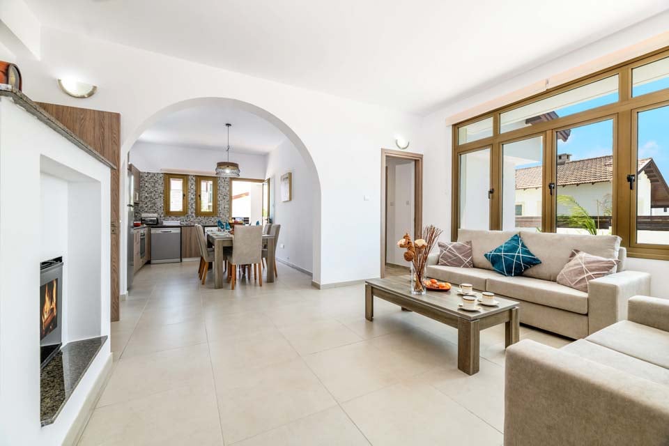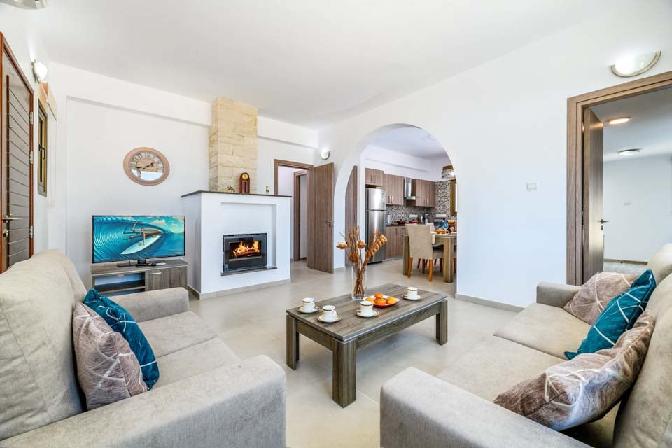 Ontdek de verfijnde inrichting van Kymma Villa, verdeeld over drie ruime slaapkamers (twee luxueuze tweepersoonskamers en één kamer met twee eenpersoonsbedden) en gratis WiFi in het hele pand. Ontdek onder de bogen van uw buitenverblijf een nieuwe oase van genot in de buitenlucht. Of u nu geniet van een cocktail bij zonsondergang in een van de zachte banken of van een diner onder de sterrenhemel, Kymma Villa creëert de perfecte setting voor het creëren van onvergetelijke herinneringen samen. Overdag kunt u een duik nemen in het glinsterende zwembad of uitrusten op een van de moderne ligstoelen op het terras.
