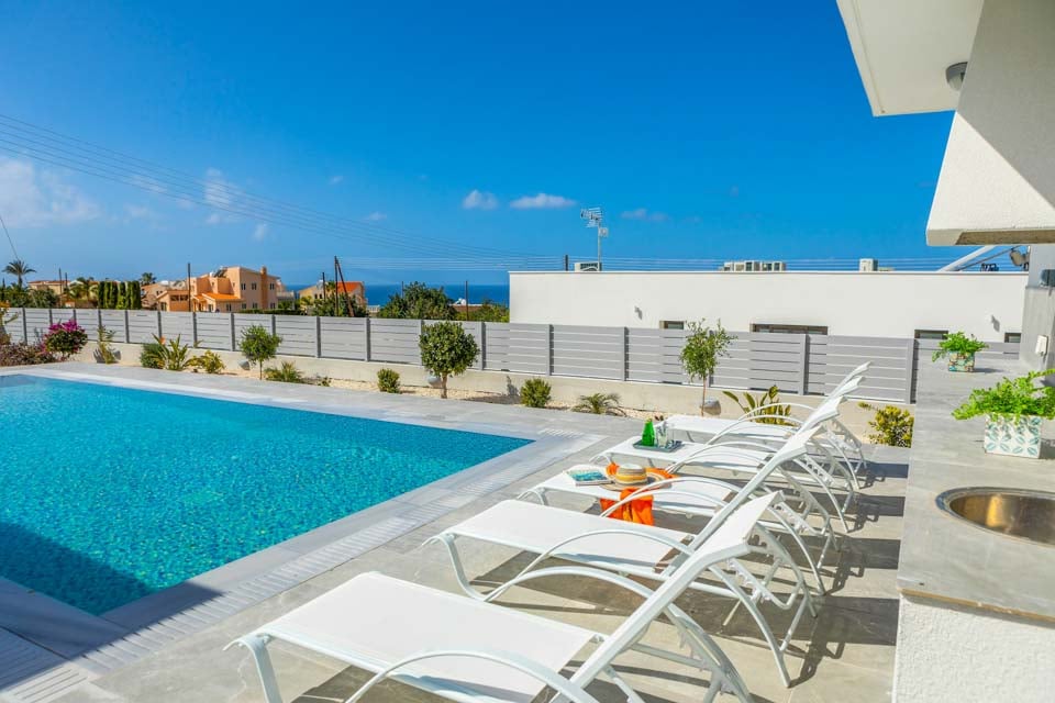 De royale buitenruimte met buitenkeuken zorgt ervoor dat u heerlijk buiten kunt eten en de grote glazen schuifpuien zorgen ervoor dat u zich gemakkelijk door de villa kunt bewegen en dat er veel licht binnenstroomt. Het licht wordt weerkaatst door de heldere inrichting en het strakke bijpassende meubilair met een koel kleurenpalet van aarde- en steentinten. De keuken is ruim en volledig uitgerust met alle moderne apparatuur, inclusief een Amerikaanse koelkast met vriezer, zodat u zelf kunt koken. Wij zijn dol op deze villa omdat deze wat ons betreft het totaalpakket heeft. Zowel het interieur als het exterieur hebben een zekere magie. Bovendien is de ligging ideaal. Dichtbij alle lokale voorzieningen, maar niet midden in het levendige centrum.