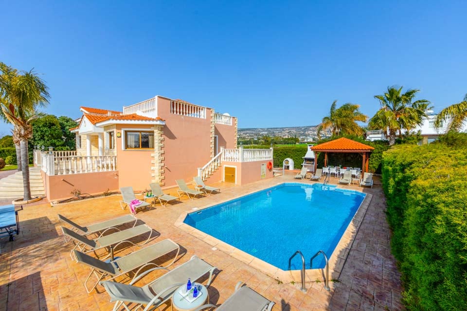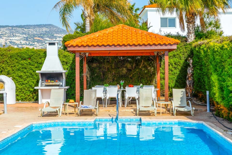 Buiten de villa vindt u het grote privézwembad van 10 x 5 meter met Romeinse treden voor gemakkelijke toegang. Rondom het zwembad liggen grote overdekte en open terrassen, met onder andere een mooi, speciaal gebouwd eetgedeelte in de openlucht, een pagode met een stenen barbecue. Ideaal voor wie graag een avondje thuis is, maar ook graag uitgaat. Voor nog meer vermaak is er een pooltafel en een pingpongtafel.
