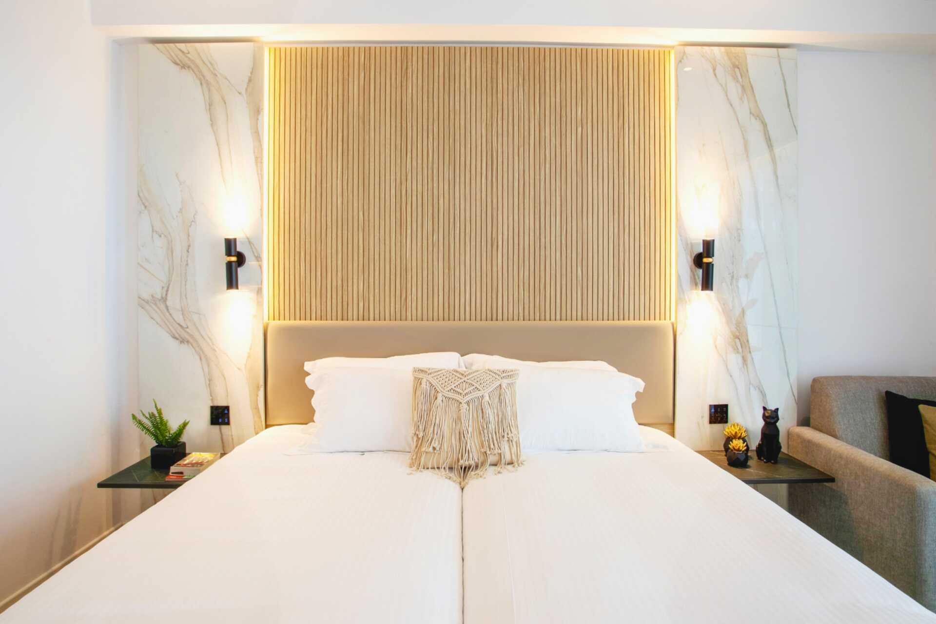 Superior kamer met balkon, sommige met zeezicht en sommige met beperkt zeezicht. Twee eenpersoonsbedden. Mogelijkheid voor extra bedden in een opklapbed, slaapbank of stapelbed. Wifi, airconditioning en kluisje inbegrepen. Minibar tegen betaling. Waterkoker en koffie en thee. Tv met internationale zenders. Badjassen en hotelslippers. Föhn. Badkamer met douche en toilet. Schoonmaak 7 keer/week. Kinderen jonger dan twee jaar zijn inbegrepen in het maximum aantal personen op de kamer.