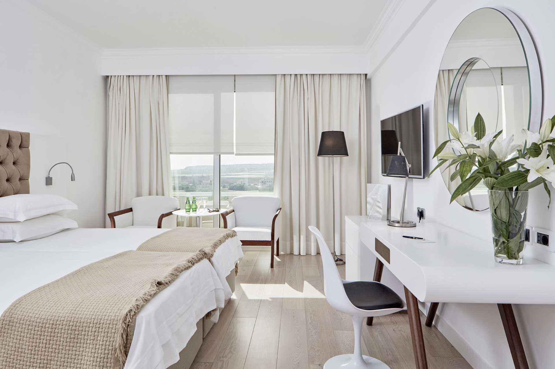 Tweepersoonskamers met balkon, sommige met zeezicht of met beperkt zeezicht. Eén tweepersoonsbed of twee éénpersoonsbedden. Mogelijk extra bed in opklapbed. Wifi, kluis en airconditioning inbegrepen. Minibar. Waterkoker en koffie- en theefaciliteiten. Tv met satellietkanalen. Föhn. Badjassen en slippers. Badkamer met douche of bad en toilet. Schoonmaak 7 keer per week.