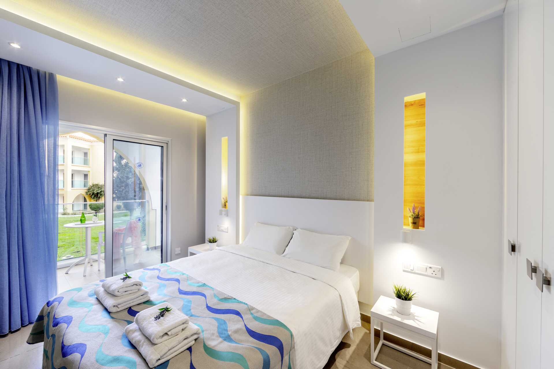 Tweekamerappartement met balkon of grondterras. Een slaapkamer en een gecombineerde woonkamer met minikeuken. Een tweepersoonsbed of twee eenpersoonsbedden. Mogelijkheid voor extra bed in slaapbank. Minikeuken met kookplaten, koelkast, magnetron, waterkoker en basiskeukengerei. Wifi, airconditioning en kluisje inbegrepen. Tv met internationale zenders. Föhn. Badkamer met bad of douche en toilet. Schoonmaak 6 keer/week.