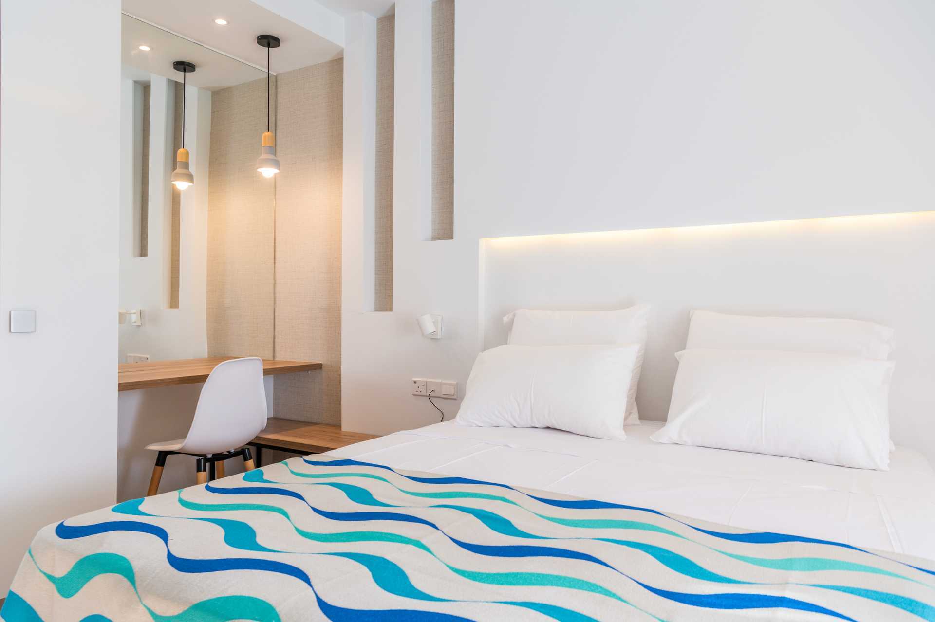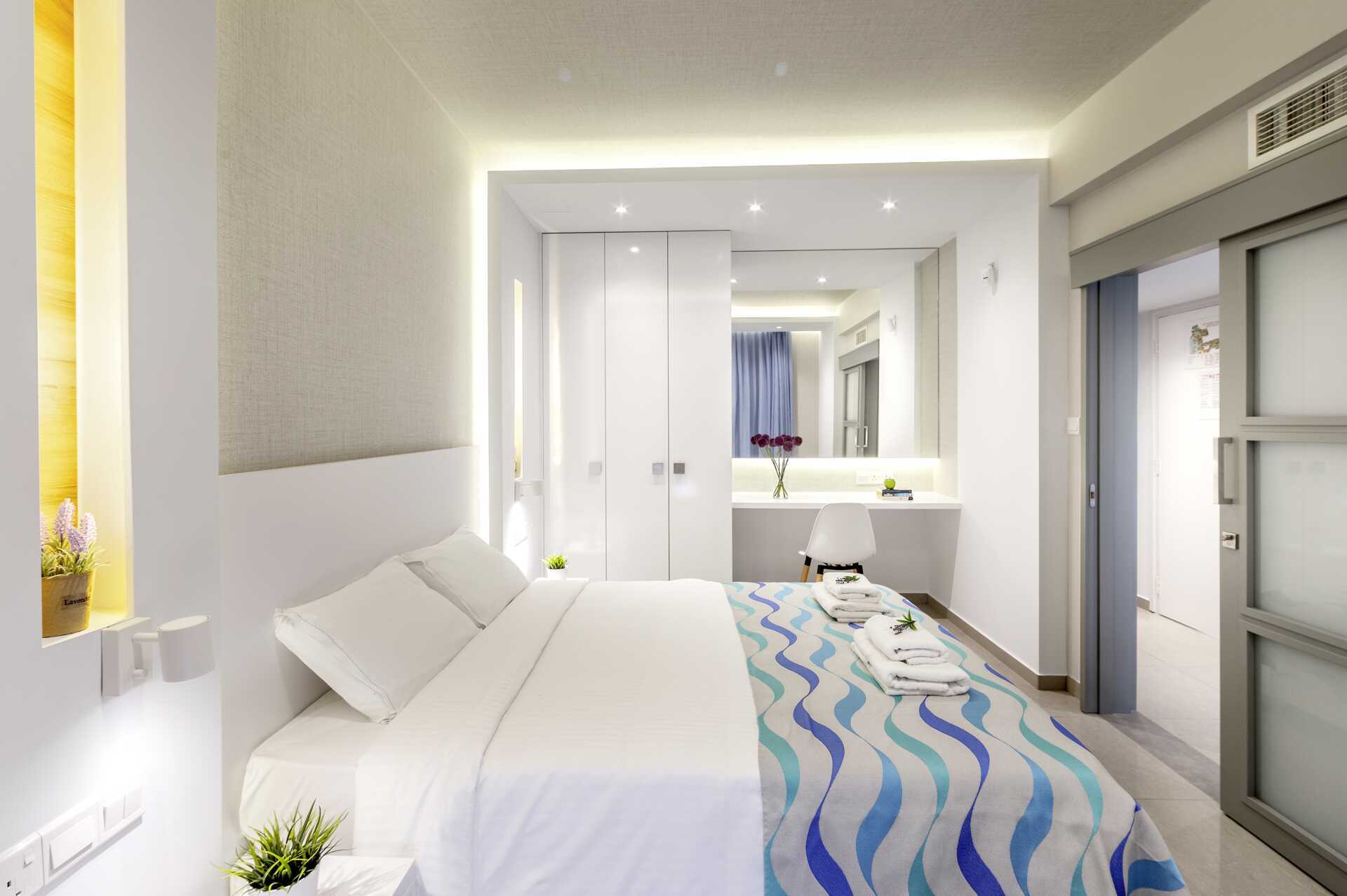 Tweepersoonskamer met balkon en uitzicht op zee. Een tweepersoonsbed. Mogelijkheid voor extra bed in de vorm van een opklapbed. Wifi, airconditioning en kluisje inbegrepen. Koelkast. Waterkoker en koffie en thee. Tv met internationale zenders. Föhn. Badkamer met bad of douche en toilet. Schoonmaak 6 keer/week.