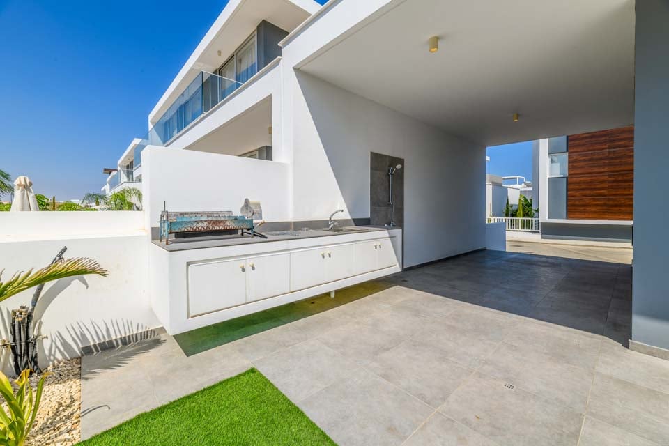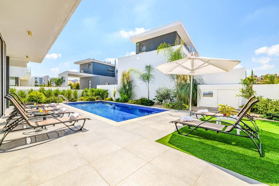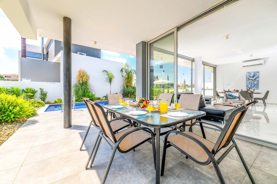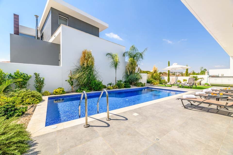 De villa is zorgvuldig ontworpen en beschikt over drie ruime slaapkamers, die elk een oase van rust en ontspanning bieden. De gehele accommodatie is voorzien van airconditioning, zodat u koel en comfortabel blijft tijdens de warme Cypriotische dagen. Dankzij de vele ruimte en het natuurlijke licht creëert de villa een gezellige, maar toch ruimtelijke sfeer, waardoor u zich er meteen thuis voelt.