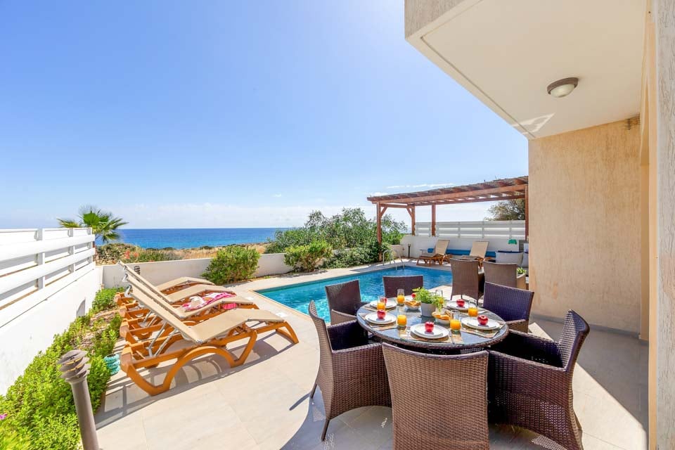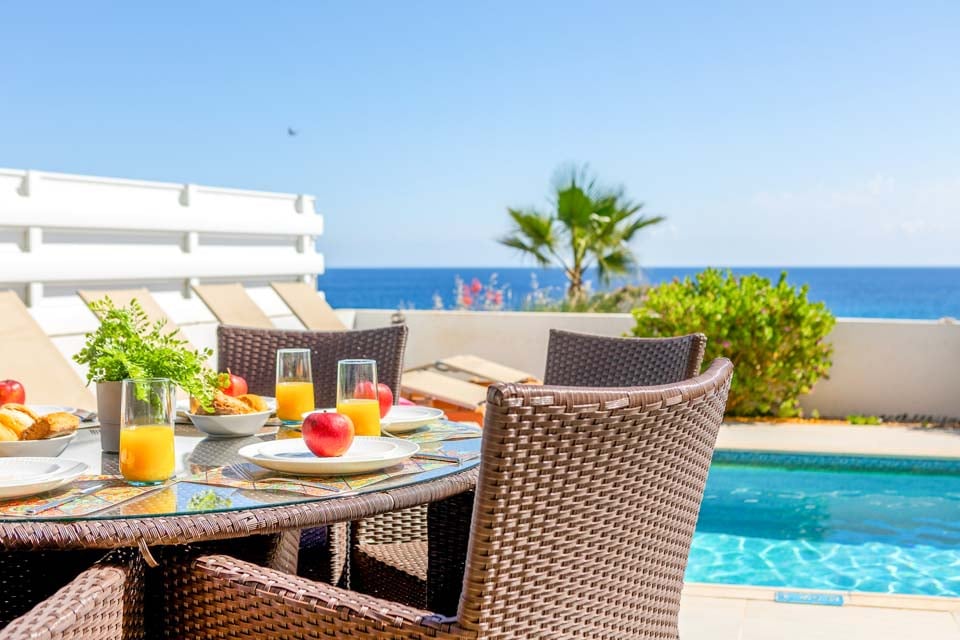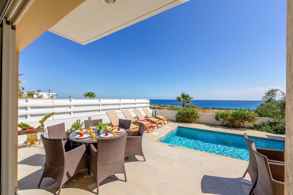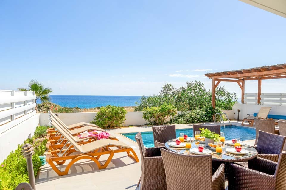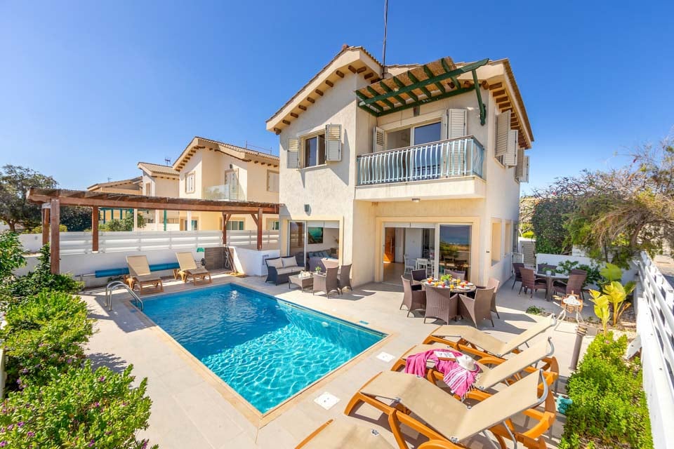 Villa Protaras Artisan 1 is ideaal voor maximaal vijf gasten en beschikt over drie slaapkamers en een prachtig uitzicht op de Middellandse Zee. We vonden het terras bij het zwembad geweldig. Het was voorzien van moderne ligstoelen, exotische struiken en rotanmeubelen. Kies een plekje uit en bewonder het uitzicht op zee met een cocktail in de hand. U kunt er ook voor kiezen om een draagbare barbecue te gebruiken voor uw familiefeesten met gemarineerde spiesjes, halloumiburgers en mezzeschotels.
