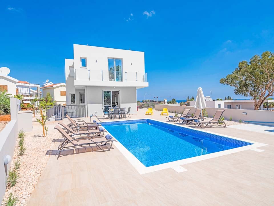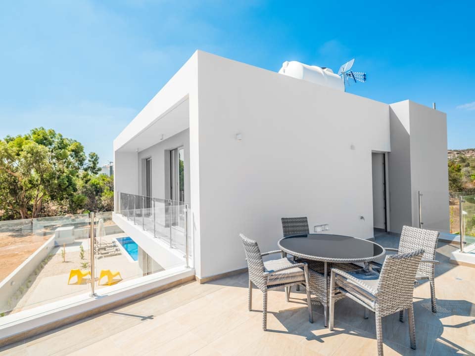 Deze prachtige en gloednieuwe villa met 3 verdiepingen ligt op slechts 2 minuten rijden van het centrum van Protaras.