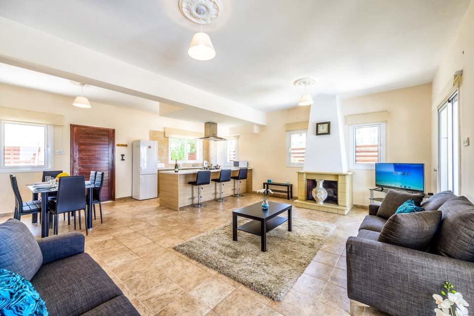 De prachtige Villa Irina Cyprus is een ideaal Cypriotisch toevluchtsoord, gelegen tussen de naburige villa's in de populaire wijk Pernera. Villa Irina Cyprus is gunstig gelegen, op minder dan 10 minuten lopen van nabijgelegen restaurants, bars en supermarkten. Als u zin heeft in een avondje heerlijk eten, dan zijn er in traditionele taverna's, Japanse sushibars en Italiaanse delicatessenzaken volop mogelijkheden voor een maaltijd onder de sterrenhemel. U kunt ook kiezen voor het terras bij het zwembad, waar u buiten kunt eten en een draagbare barbecue vindt. Deze hoek van de tuin is ideaal voor een lunch in de villa. U kunt hier het beste samen met familie en vrienden genieten, onder het genot van een fles lokale wijn. Het zwembad van 8x4m is ideaal om in de middagzon te spetteren en samen met de kinderen vakantieherinneringen te creëren.