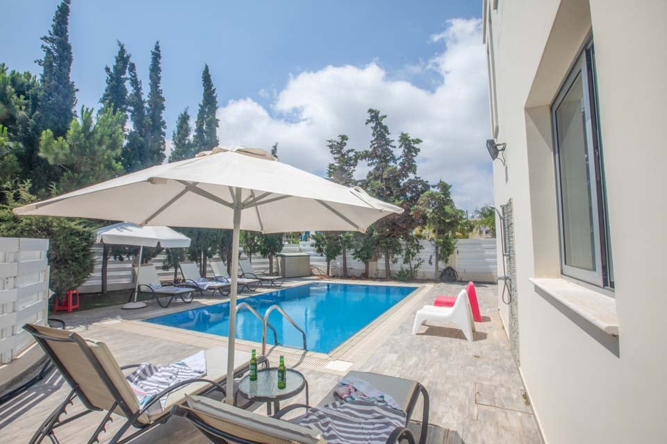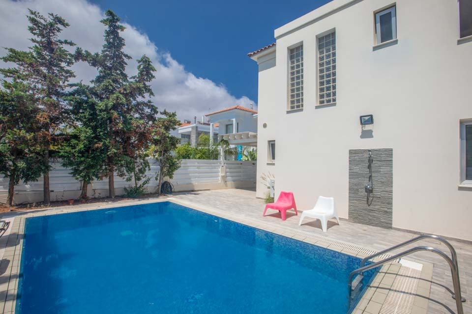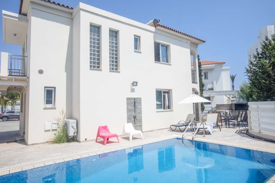 Deze villa met drie slaapkamers biedt comfortabel plaats aan maximaal zeven gasten en is een must-see voor strandvakanties. Deze prachtige witgekalkte villa ligt op slechts 360 meter van de zandstranden van Pernera en is een uitstekende keuze. Aan het einde van de straat vindt u lokale supermarkten en er zijn volop lokale eetgelegenheden. Deze villa ligt aan het einde van een doodlopende straat en beschikt over een eigen privéparkeerplaats. Een auto is hier echter niet noodzakelijk.