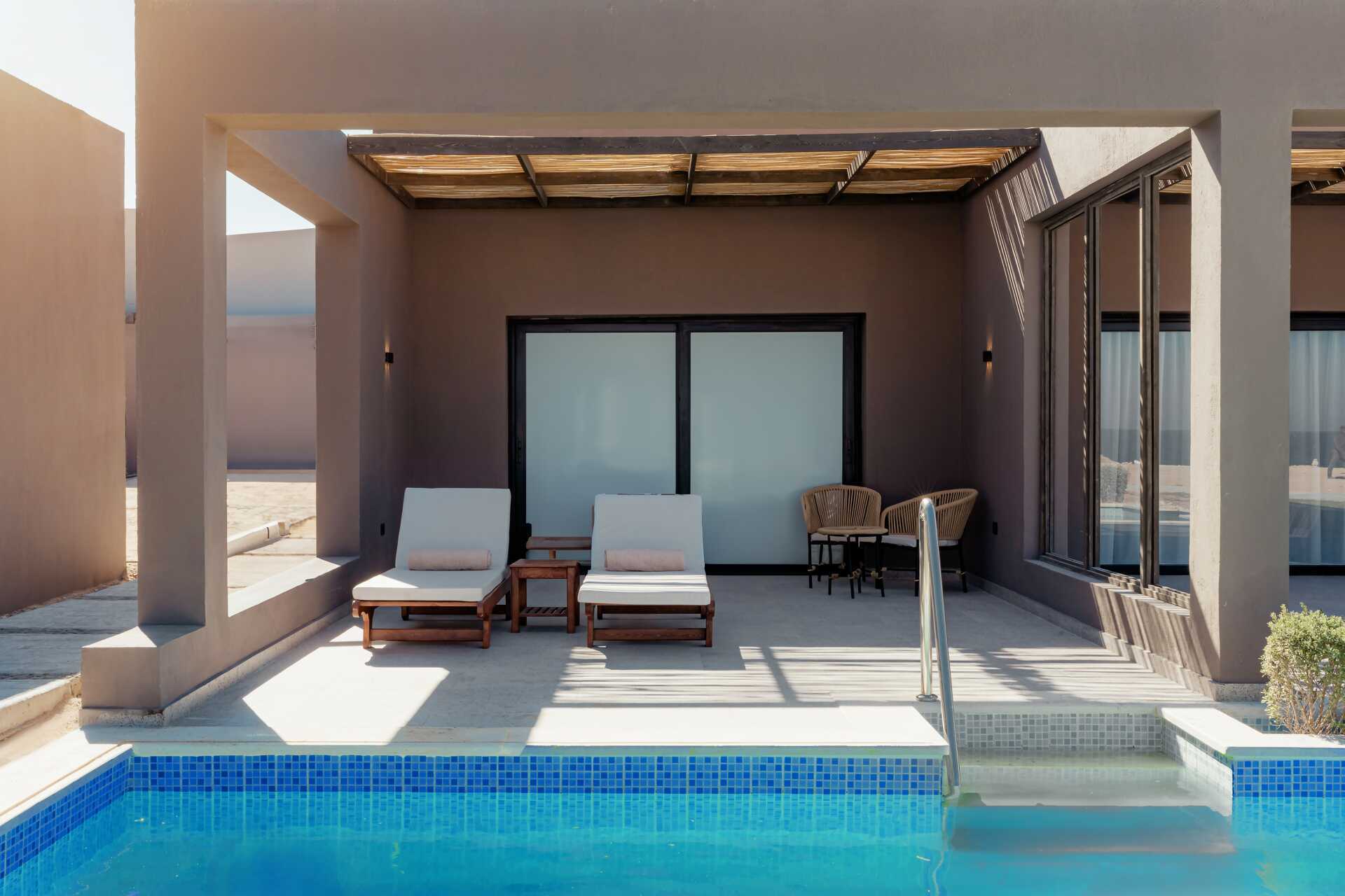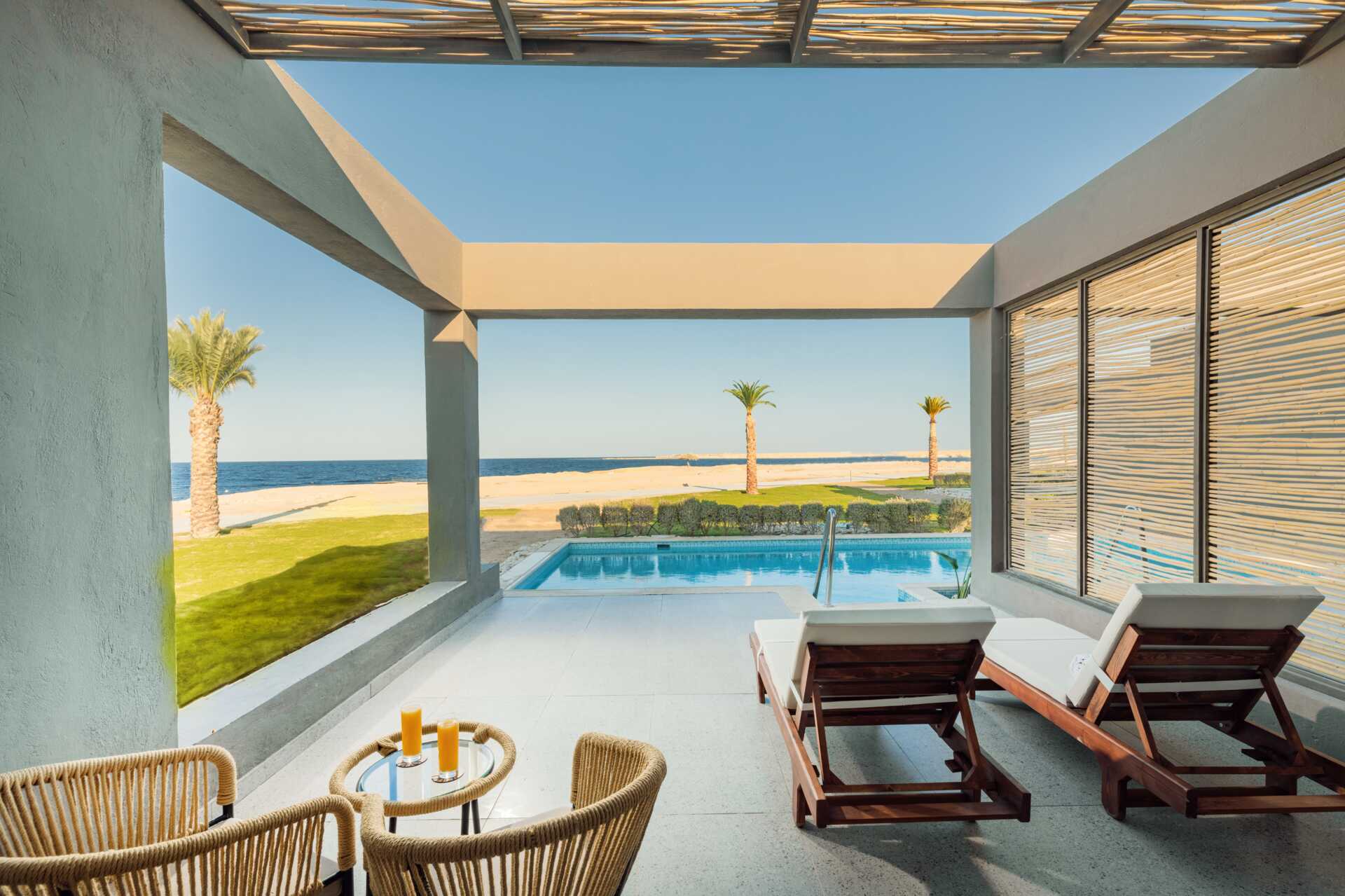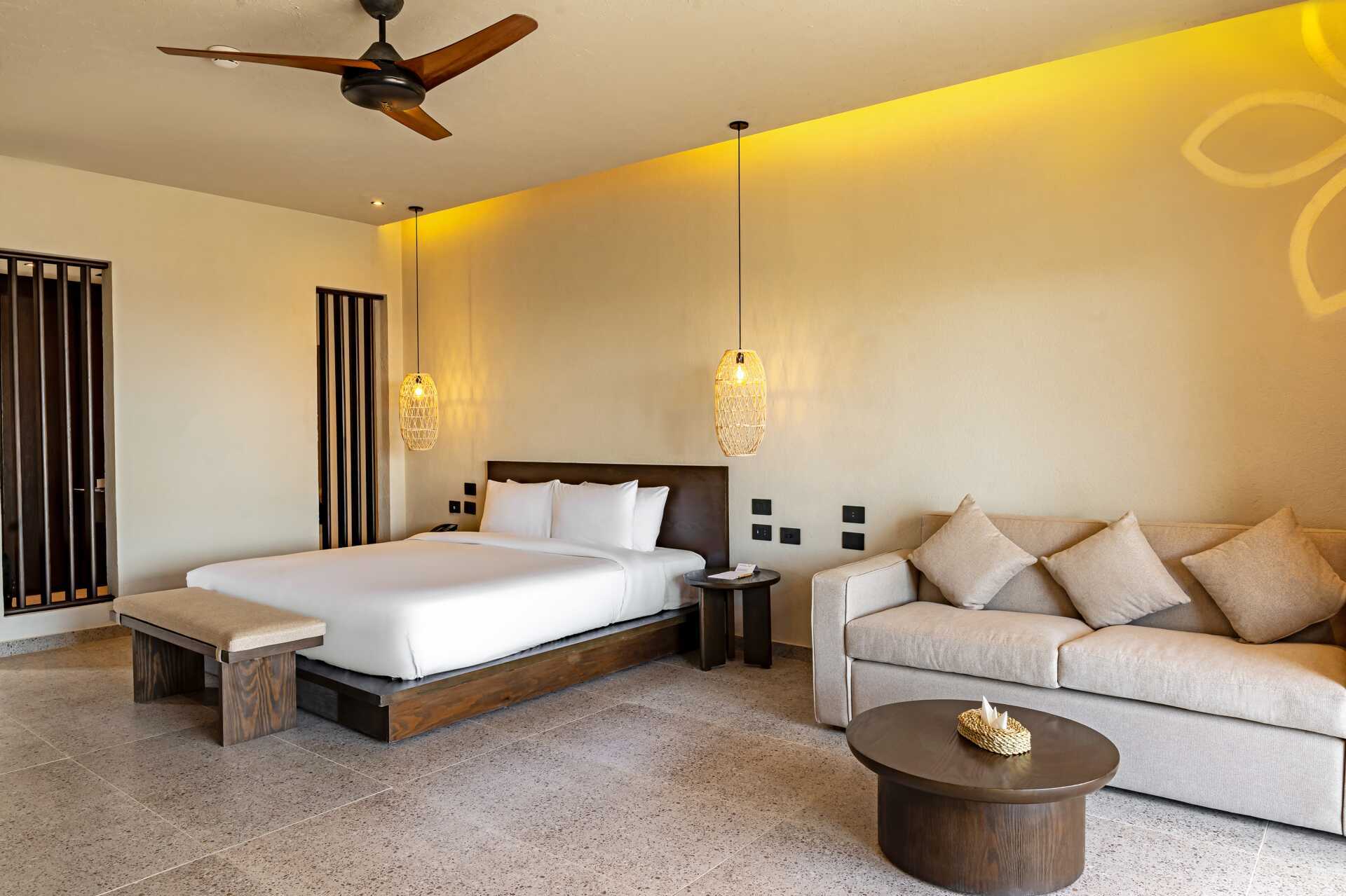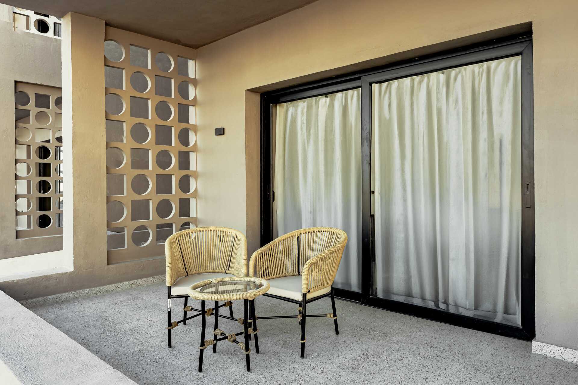 Junior suite met terras op de begane grond en gedeeld zwembad, sommige met uitzicht op zee. Een tweepersoonsbed. Mogelijkheid tot een extra bed in de vorm van een slaapbank. Wifi, airconditioning en kluisje inbegrepen. Minibar tegen betaling. Waterkoker, koffie en thee. Tv met internationale zenders. Föhn. Badkamer met douche en toilet. Schoonmaak 7 keer per week.
