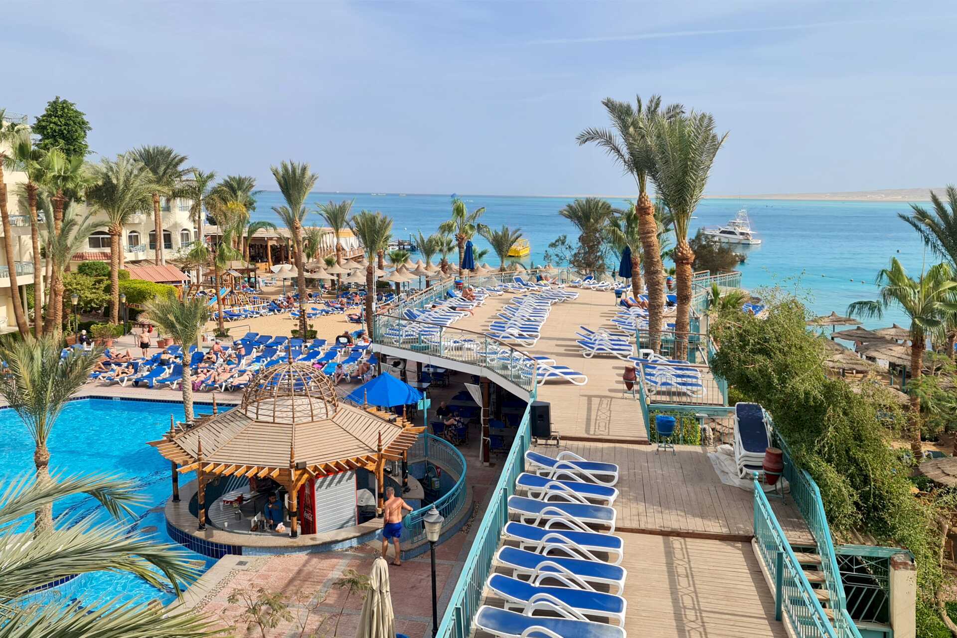 Bella Vista biedt een perfecte locatie aan het strand in Hurghada, midden in het centrum van Sekalla. Bij het met palmbomen omzoomde zwembadgedeelte ligt een verwarmd zwembad dat minimaal 20 graden is. De zwembadtemperatuur kan echter 's ochtends, 's avonds en bij slecht weer een paar graden dalen. Apart kinderbad. Ligstoelen, parasols en badlakens zijn gratis beschikbaar. Er zijn ook ligstoelen en parasols op het strand aanwezig, evenals een strandbar.