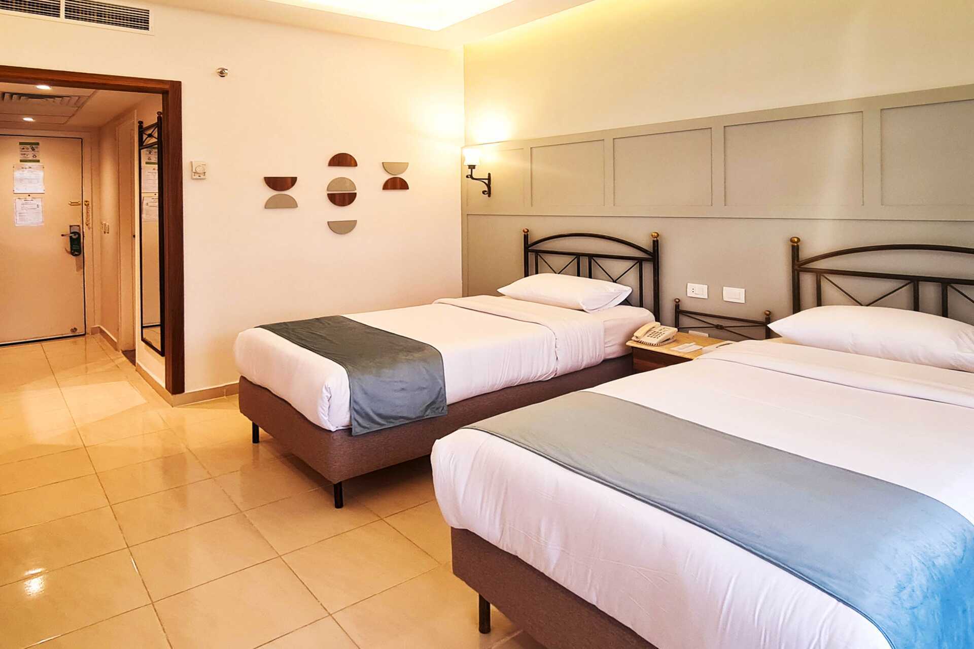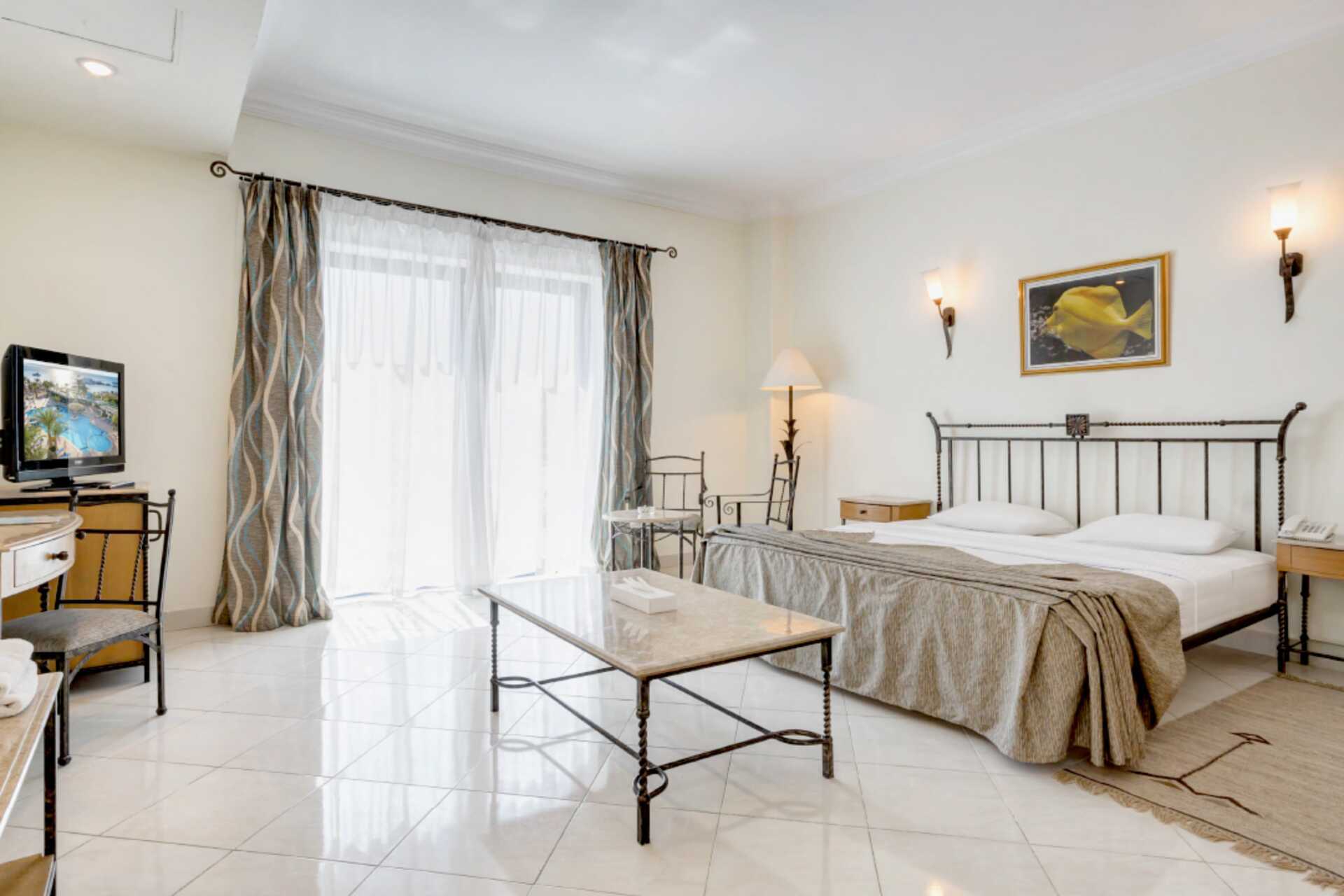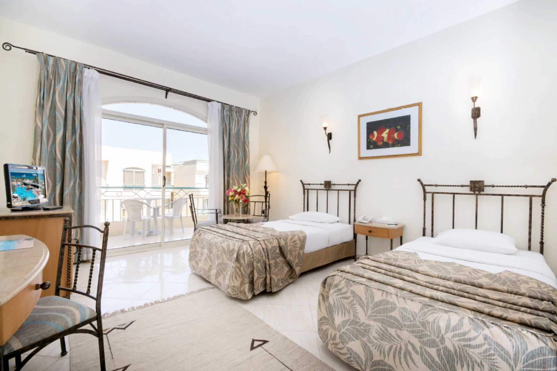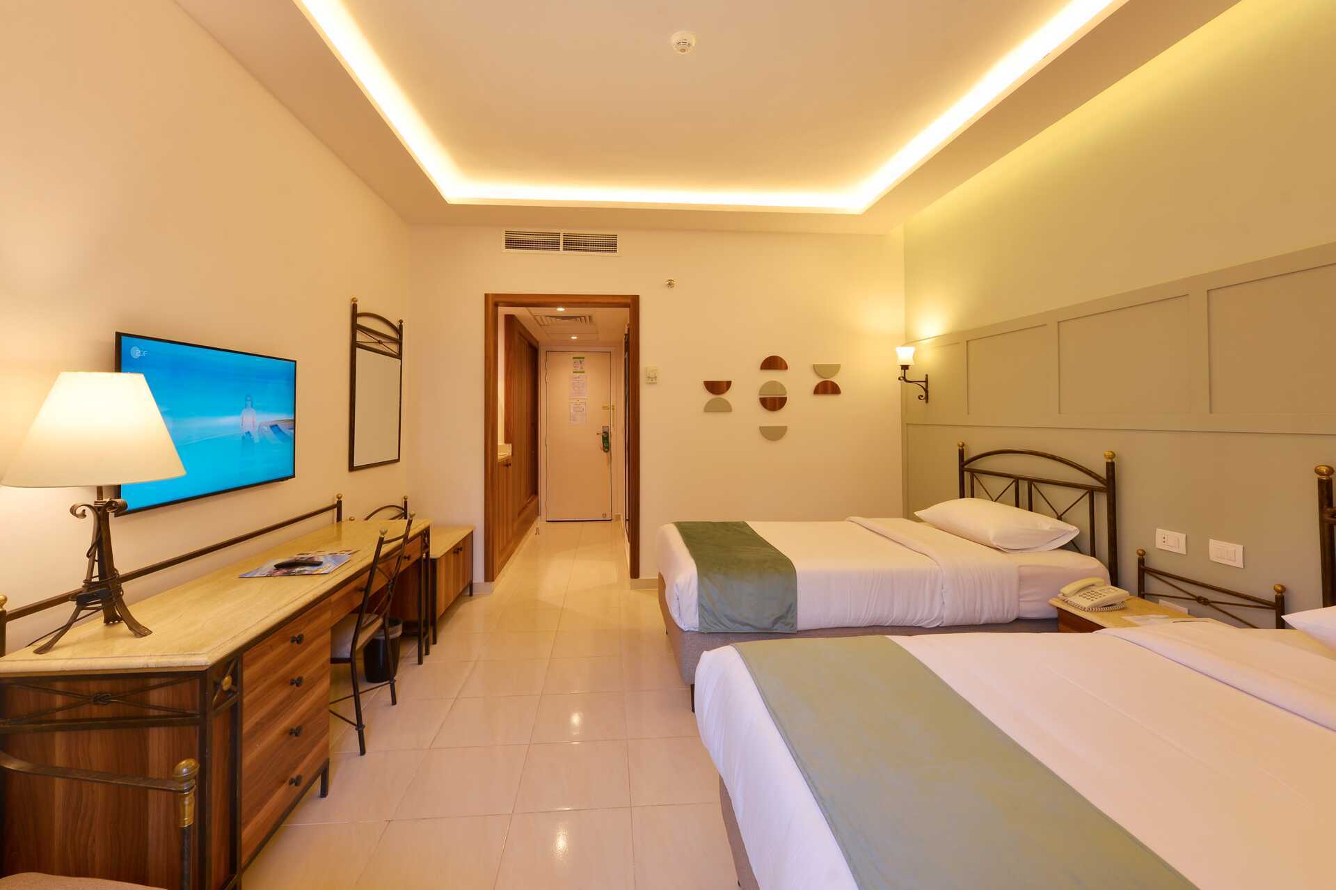 Tweepersoonskamer met balkon of terras. All Inclusive is inbegrepen. Een tweepersoonsbed of twee eenpersoonsbedden. Mogelijkheid tot extra bedden in opklapbedden. Airconditioning inbegrepen. Kluisje en wifi tegen betaling. Minibar - een klein flesje water inbegrepen - wordt elke dag bijgevuld, andere drankjes en snacks tegen betaling. Waterkoker en koffie en thee. Tv met internationale zenders. Badkamer met bad of douche en toilet. Schoonmaak 7 keer/week.