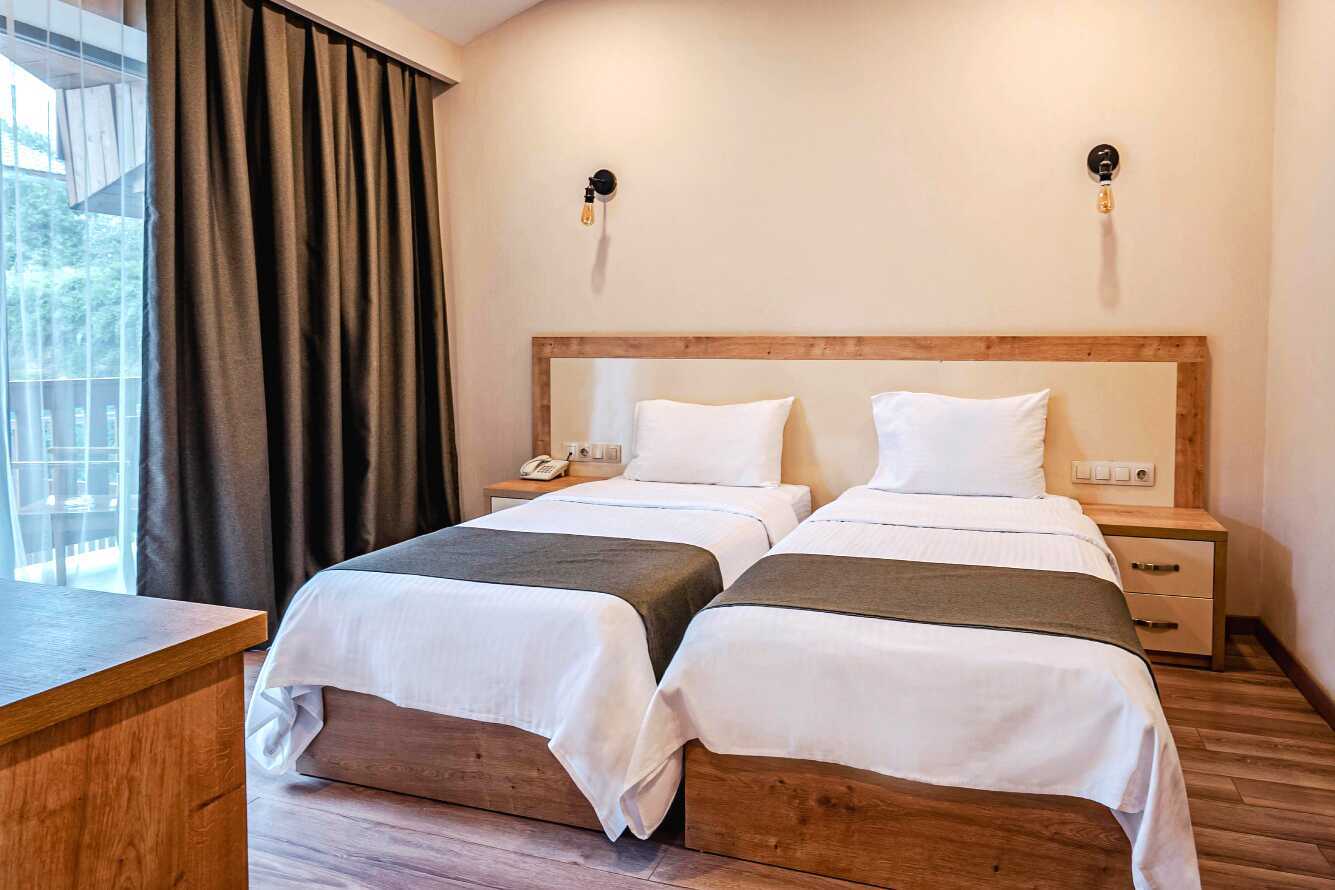 Tweepersoonskamer, zonder patio. Een tweepersoonsbed of twee eenpersoonsbedden. Wifi, berging en airconditioning voor verwarming zijn inbegrepen. Waterkoker en koffie en thee. Tv met internationale zenders. Badjassen en hotelslippers. Föhn. Badkamer met douche en toilet. Schoonmaak 6 keer/week.