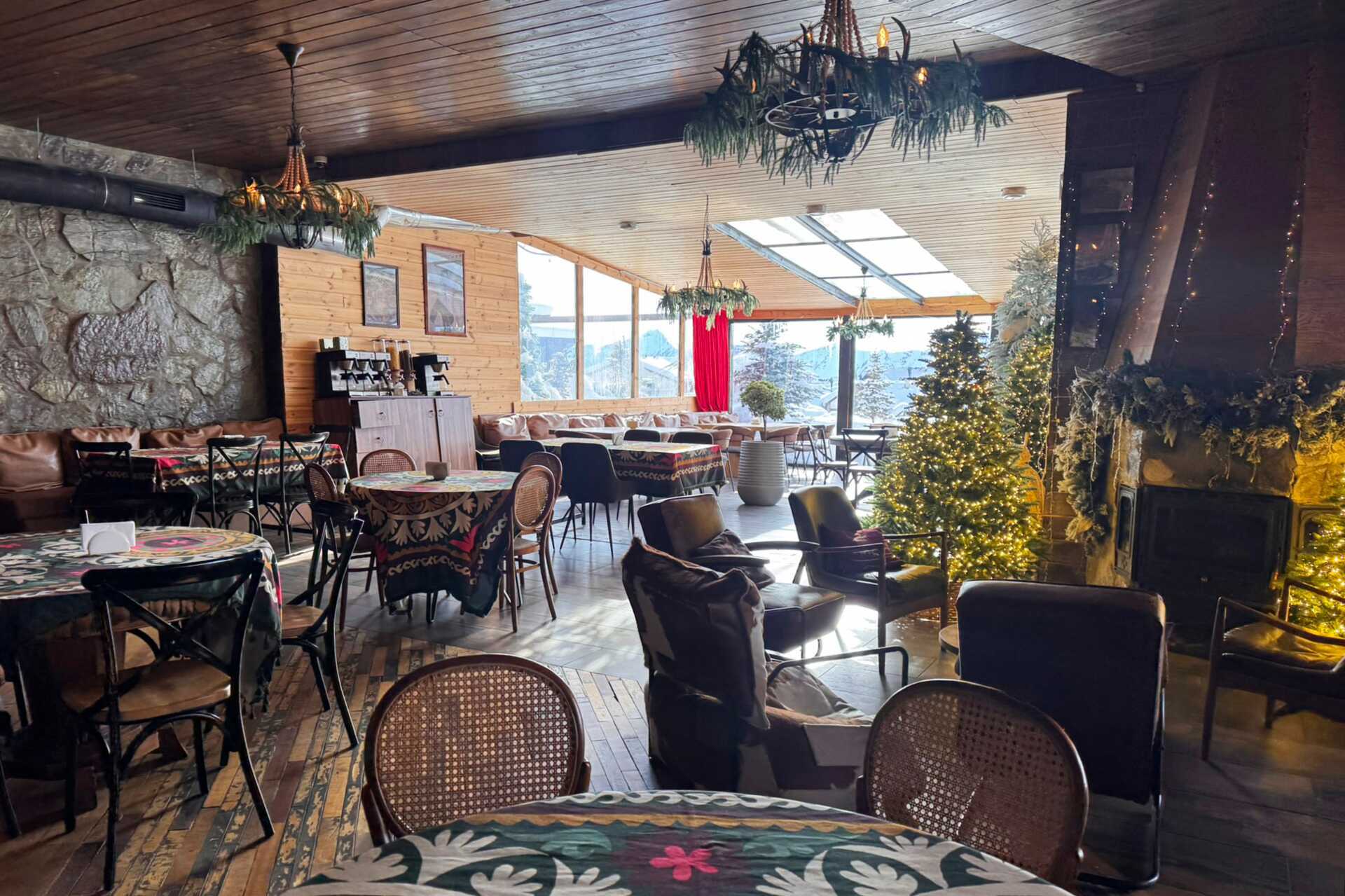 Het hotel beschikt over het restaurant Gudauri Chalet, dat zowel Europese gerechten als lokale smaken uit Georgië serveert. Elke ochtend wordt er een stevig ontbijtbuffet geserveerd, gevolgd door een à-la-cartemenu.