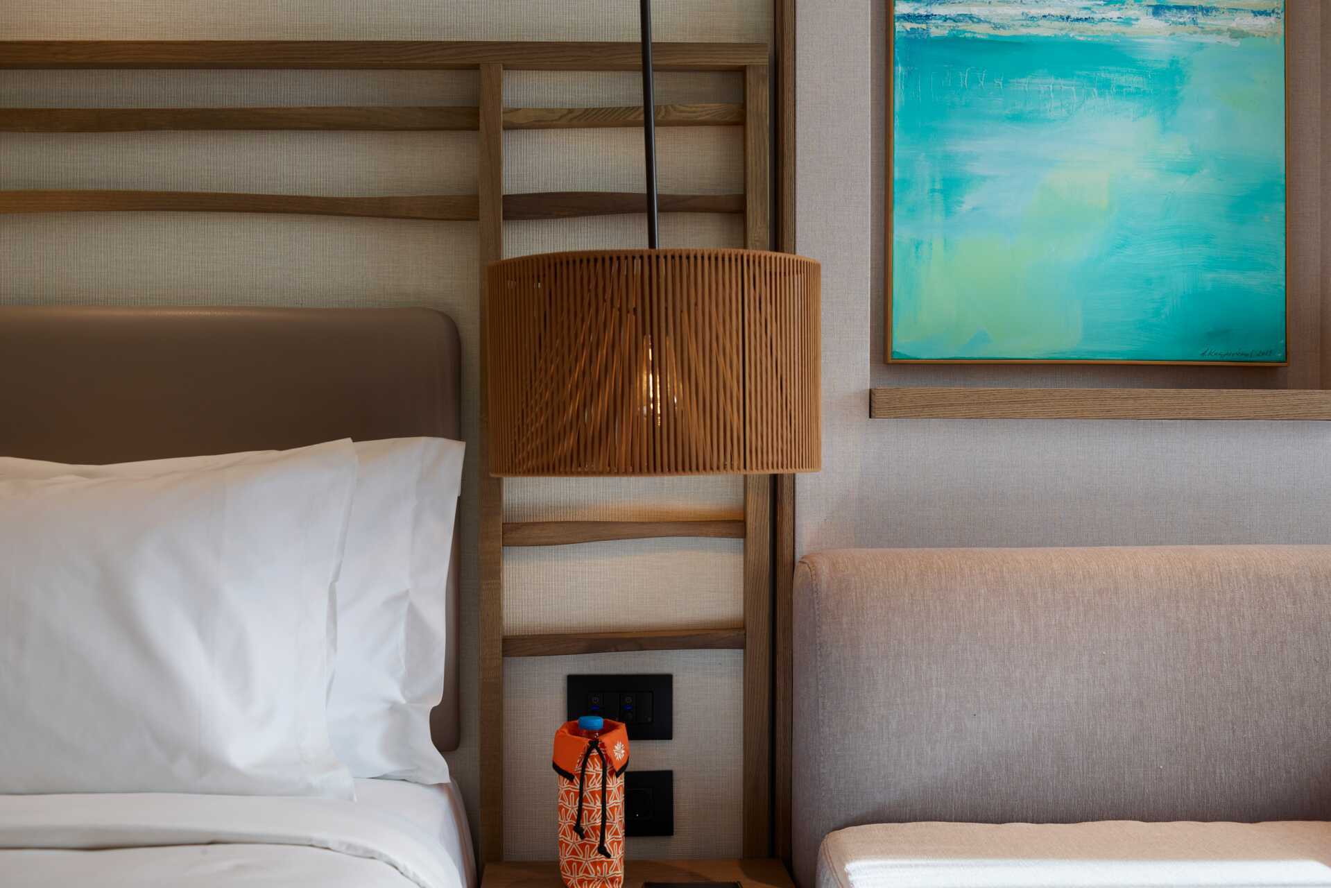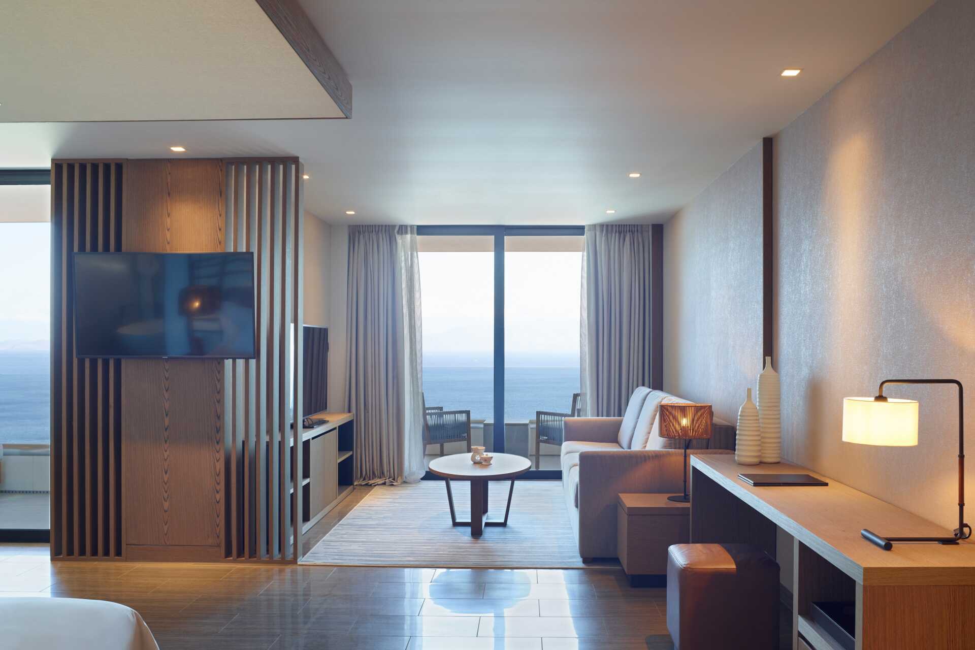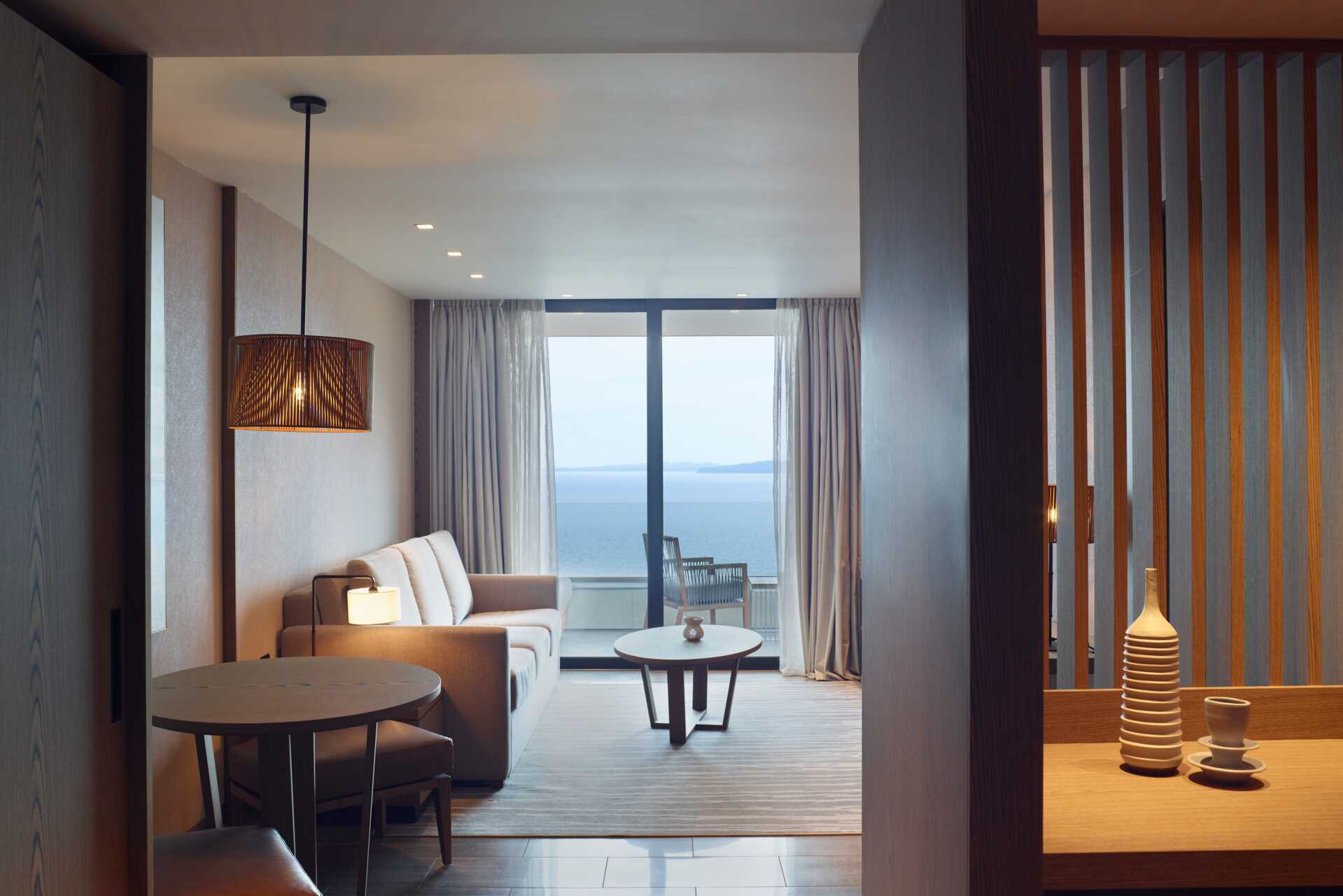 Familiekamer met balkon en uitzicht op zee. Een slaapkamer en een woonkamer. De kamers worden gescheiden door een schuifdeur. Een tweepersoonsbed. Mogelijkheid voor extra bedden in een slaapbank. Wifi, airconditioning en kluisje inbegrepen. Minibar. Nespresso koffiemachine - water en zes capsules per dag inbegrepen. Tv met internationale zenders. Badjassen en hotelslippers. Voorzieningen in de badkamer. Open bad en wastafel. Föhn. Aparte douche en apart toilet. Schoonmaak 7 keer/week. Kinderen jonger dan twee jaar zijn inbegrepen in het maximum aantal personen op de kamer.