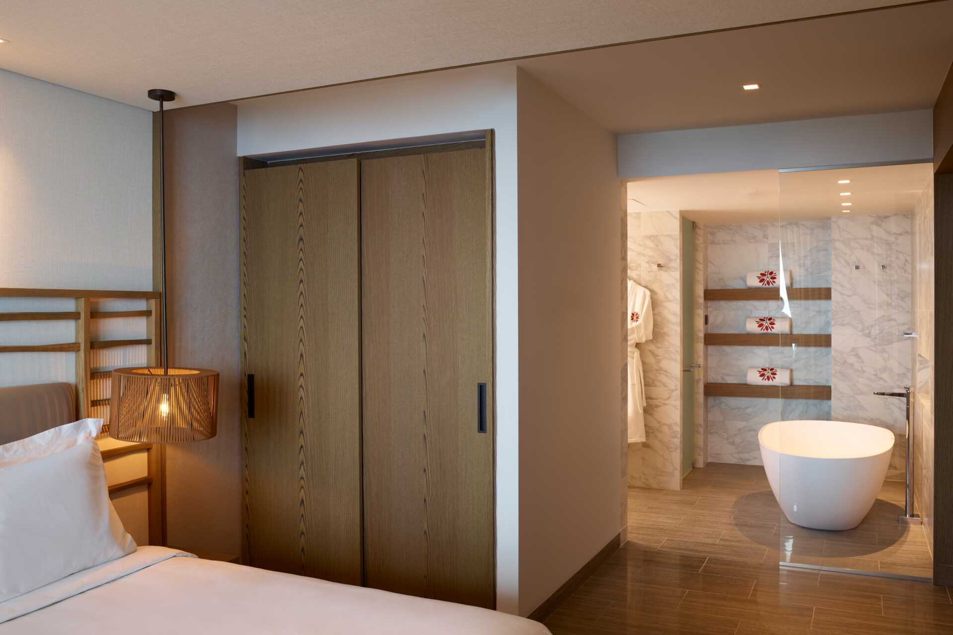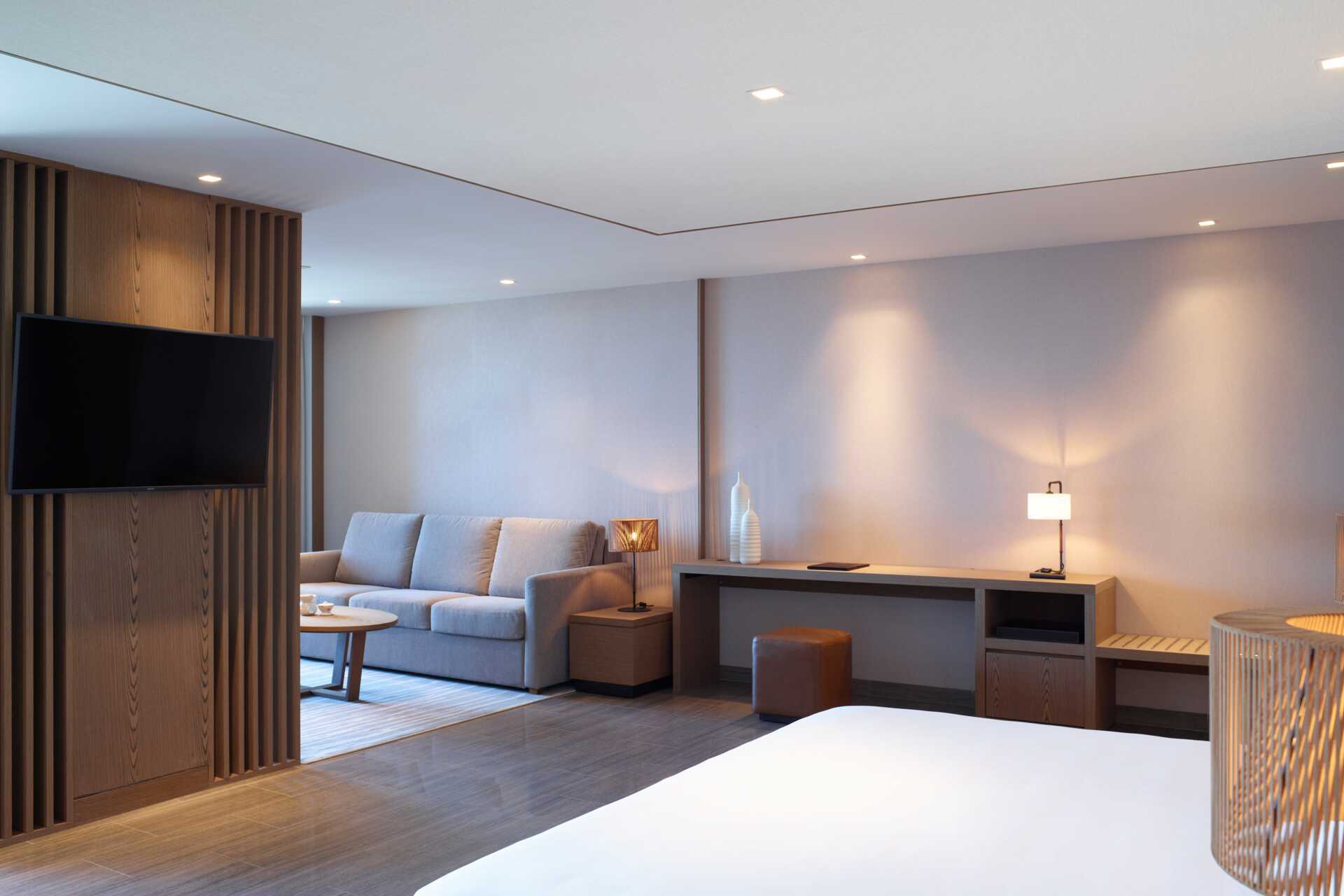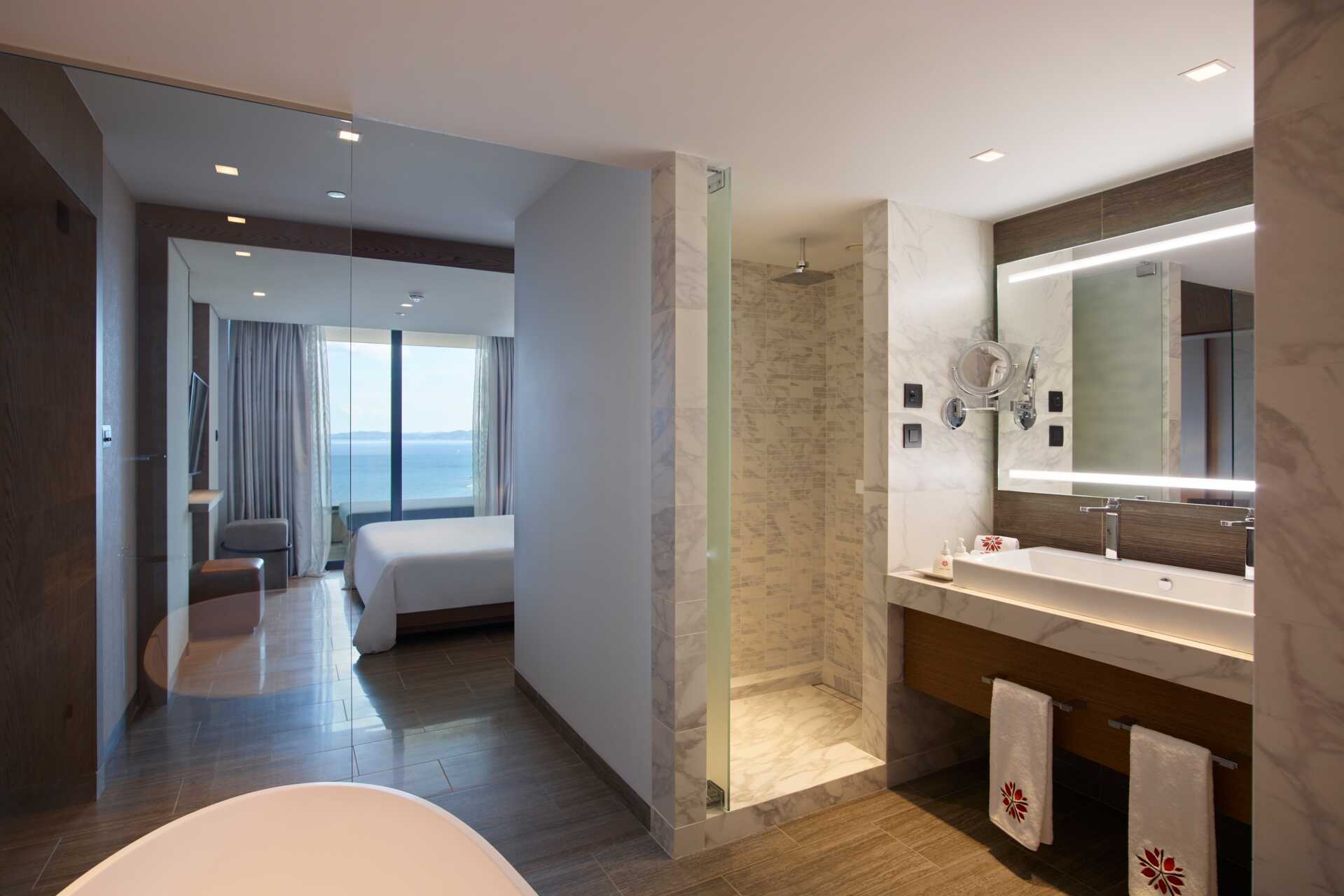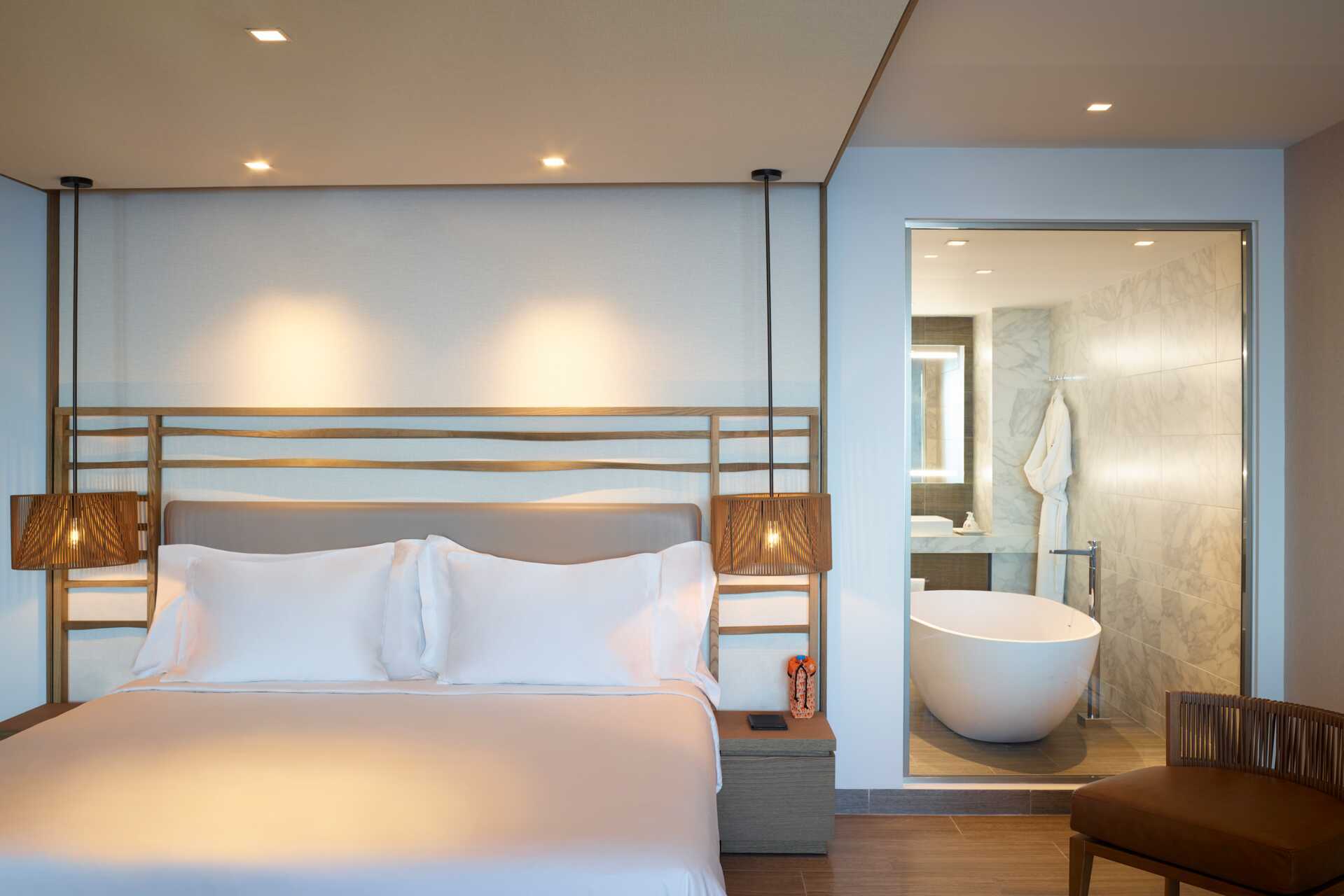 Familiekamer met balkon en uitzicht op zee. Een slaapkamer en een woonkamer. De kamers worden gescheiden door een schuifdeur. Een tweepersoonsbed. Mogelijkheid voor extra bedden in een slaapbank. Wifi, airconditioning en kluisje inbegrepen. Minibar. Nespresso koffiemachine - water en zes capsules per dag inbegrepen. Tv met internationale zenders. Badjassen en hotelslippers. Voorzieningen in de badkamer. Open bad en wastafel. Föhn. Aparte douche en apart toilet. Schoonmaak 7 keer/week. Kinderen jonger dan twee jaar zijn inbegrepen in het maximum aantal personen op de kamer.