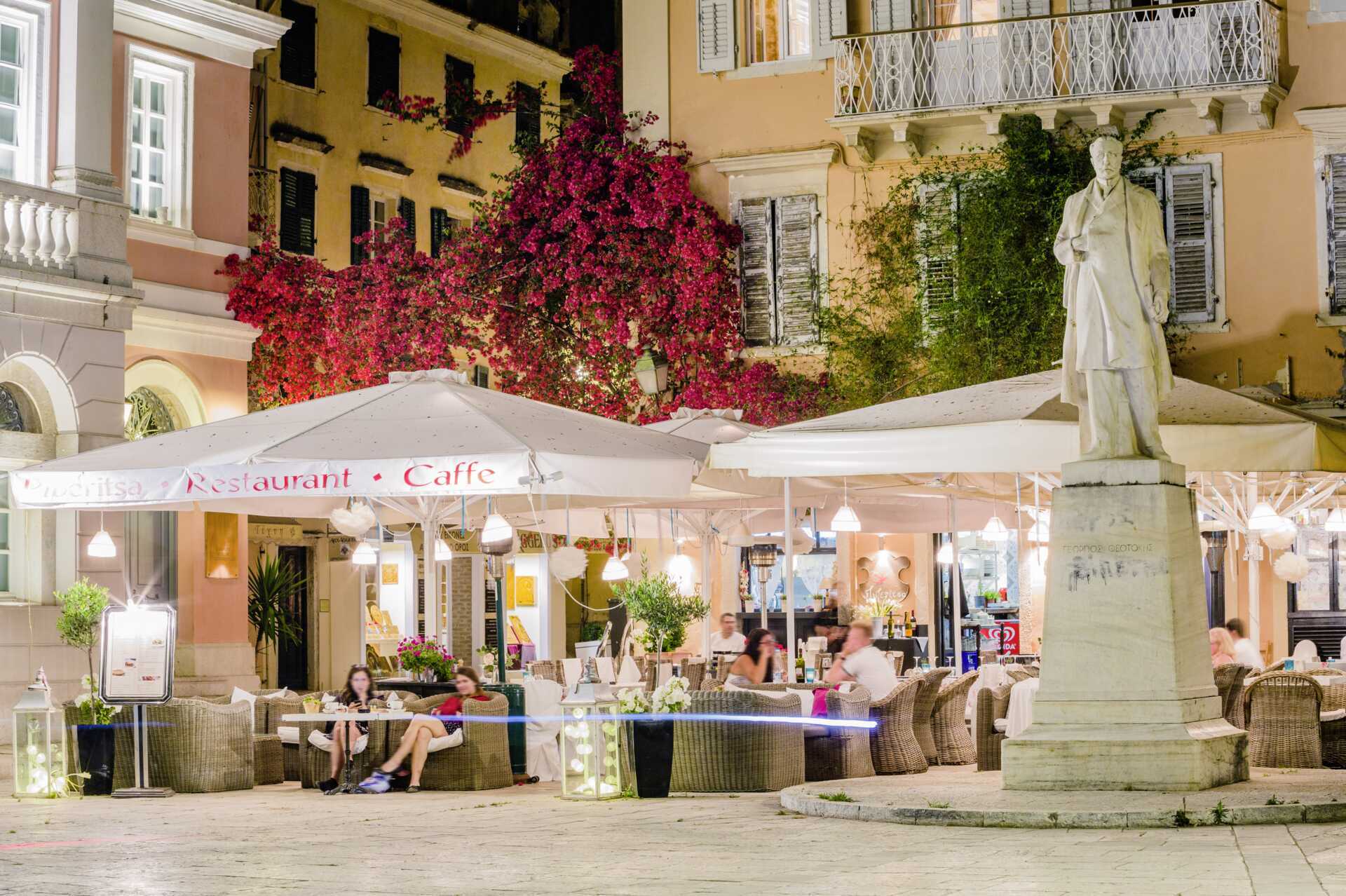 Venetiaanse smaak De hoofdstad van Corfu is anders dan alle andere Griekse steden. Hier zie je duidelijk het Venetiaanse, Franse en Engelse erfgoed terug in een mediterrane architectuur met charme, stijl en stadsgeschiedenis. De prachtige esplanade in het centrum van de stad herbergt cafés en restaurants. Als je op zoek bent naar vertier, vermaak en winkelen, is Corfu-stad de plek om naartoe te gaan.