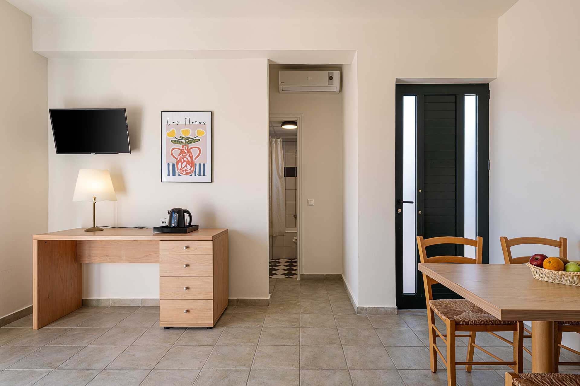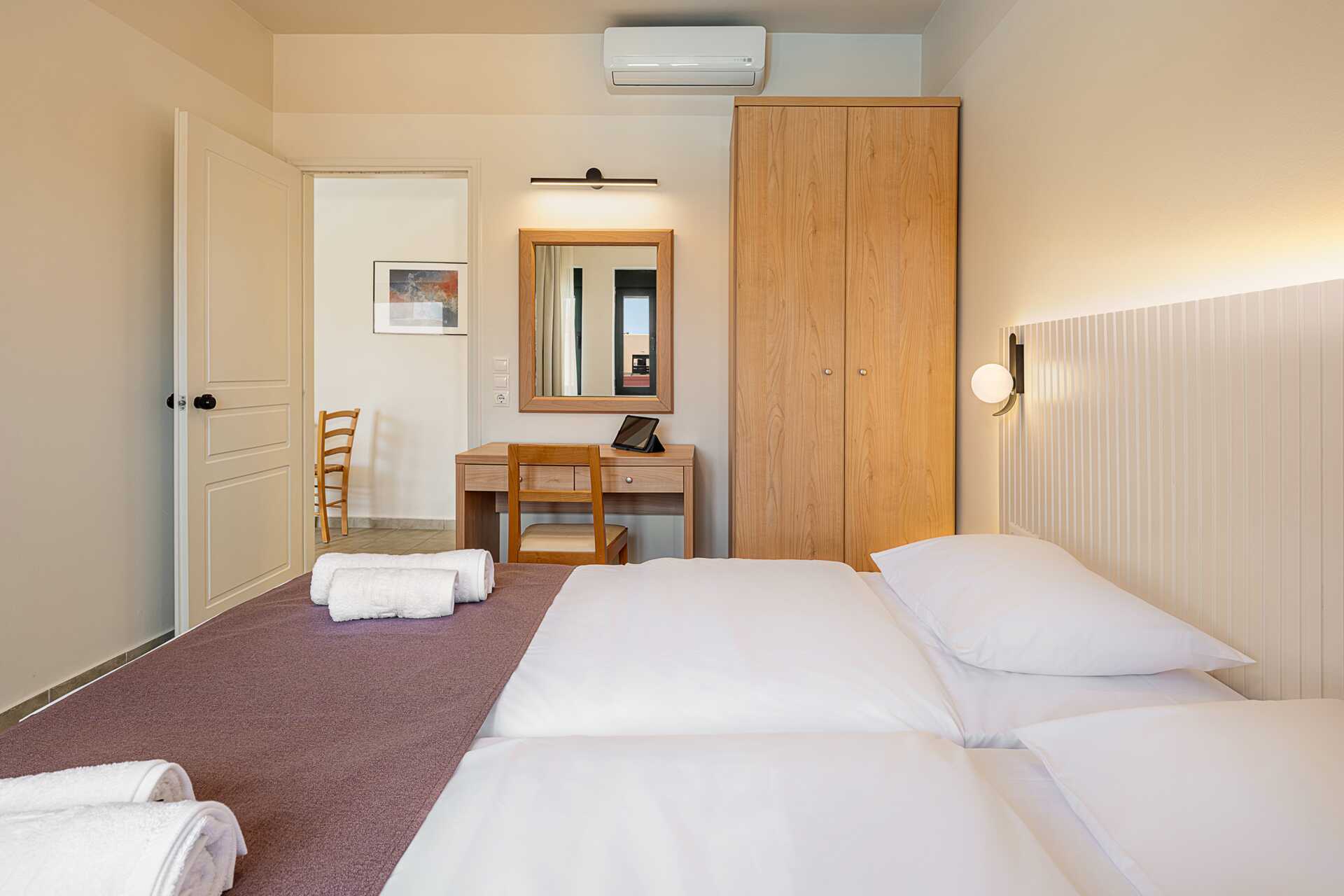 Appartement met twee slaapkamers, balkon, balkon op de begane grond of gedeeld terras, sommige met uitzicht op het zwembad. Gedeelde patio's kunnen zich op de begane grond bevinden met een gedeeld balkon of op een hogere verdieping met een gedeeld balkon. Slaapkamer en een gecombineerde woon-/keukenhoek. Twee eenpersoonsbedden. Mogelijkheid voor extra bedden in slaapbank. Minikeuken met koelkast, kookplaat, waterkoker en eenvoudige keukenapparatuur. Wifi - verbinding en snelheid variëren, borg en airconditioning inbegrepen. Tv met internationale zenders. Föhn. Badkamer met douche en toilet. Schoonmaak 6 keer/week.