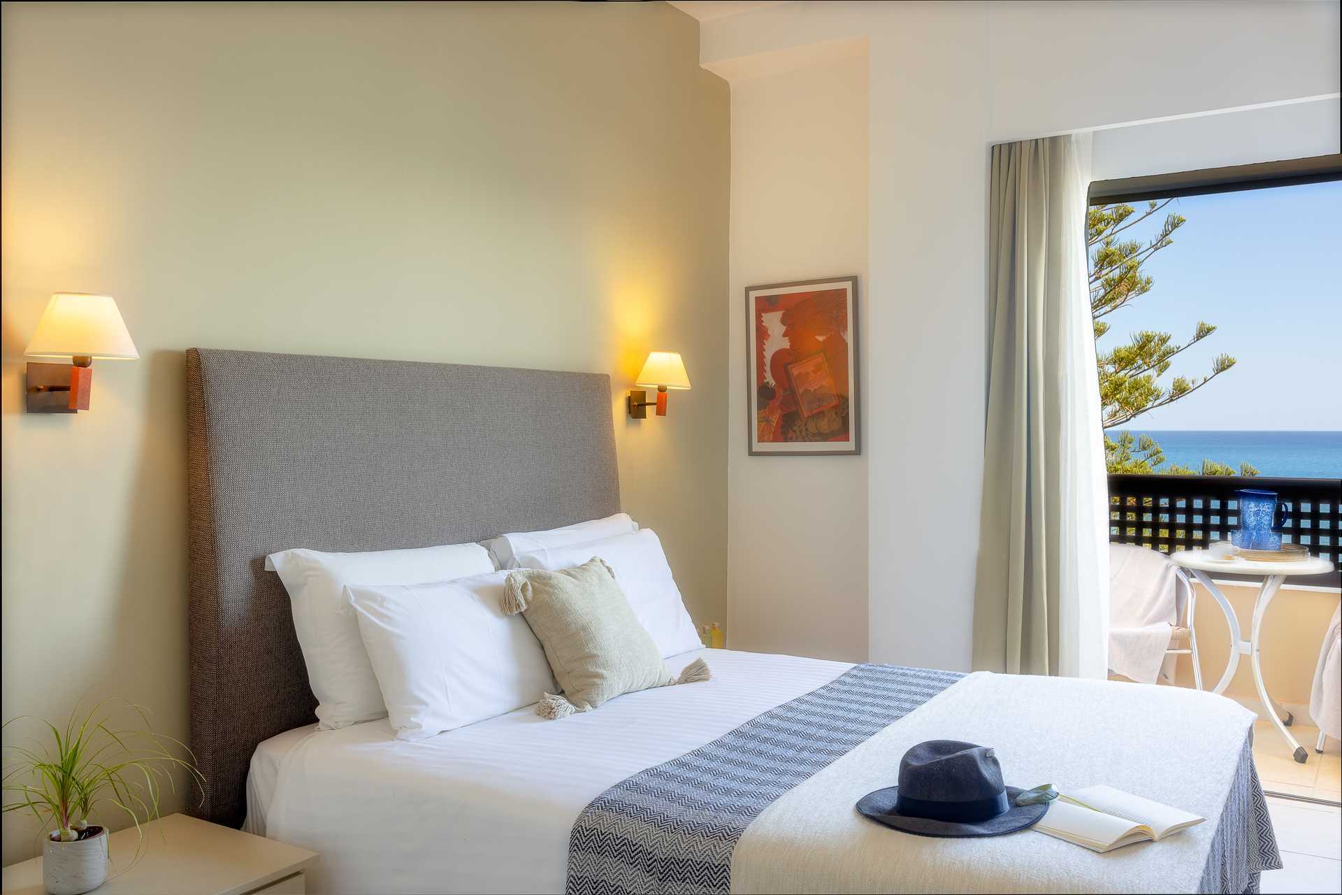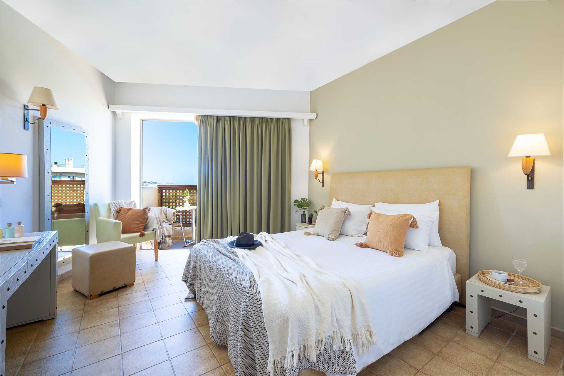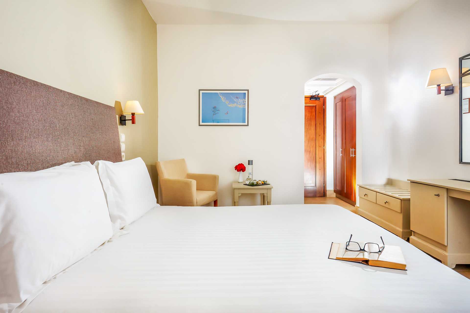 Tweepersoonskamer met balkon of terras, sommige kamers met uitzicht op het zwembad of de zee. De tweepersoonskamers met zeezicht bevinden zich aan de strandzijde, in het hoofdgebouw. De tweepersoonskamers met uitzicht op het zwembad bevinden zich in de zwembadgebouwen, aan de overkant van de weg. In alle gebouwen zijn tweepersoonskamers zonder specifiek uitzicht beschikbaar. Een tweepersoonsbed of twee eenpersoonsbedden. Mogelijkheid tot een extra bed in een eenpersoonsbed. Airconditioning en wifi inbegrepen. Kluisje tegen betaling. Minibar tegen betaling. Tv met internationale zenders. Föhn. Kleine badkamer met douche en toilet. Schoonmaak 7 keer/week.