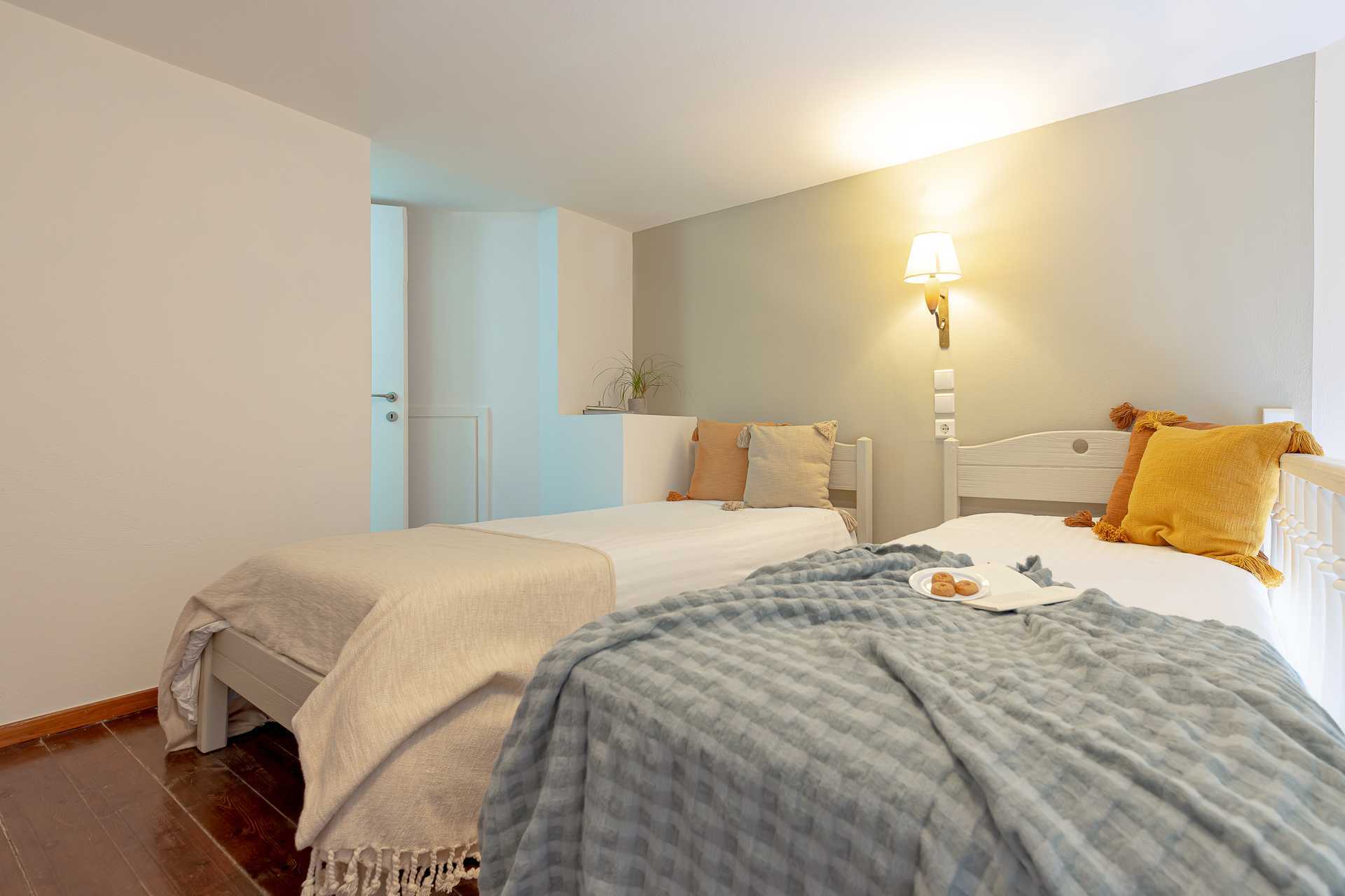 Familiekamer op verdieping met balkon of terras. De familiekamers bevinden zich in de zwembadgebouwen. Open plattegrond met een steile trap tussen de verdiepingen. Op de begane grond bevindt zich een slaapkamer met een tweepersoonsbed of twee eenpersoonsbedden en een badkamer met haardroger, bad en toilet. Boven is er een slaapkamer met twee eenpersoonsbedden en een badkamer met douche en toilet. Airconditioning en wifi inbegrepen. Kluisje tegen betaling. Minibar tegen betaling. Op elke verdieping een televisie met internationale zenders. Schoonmaak 7 keer/week.