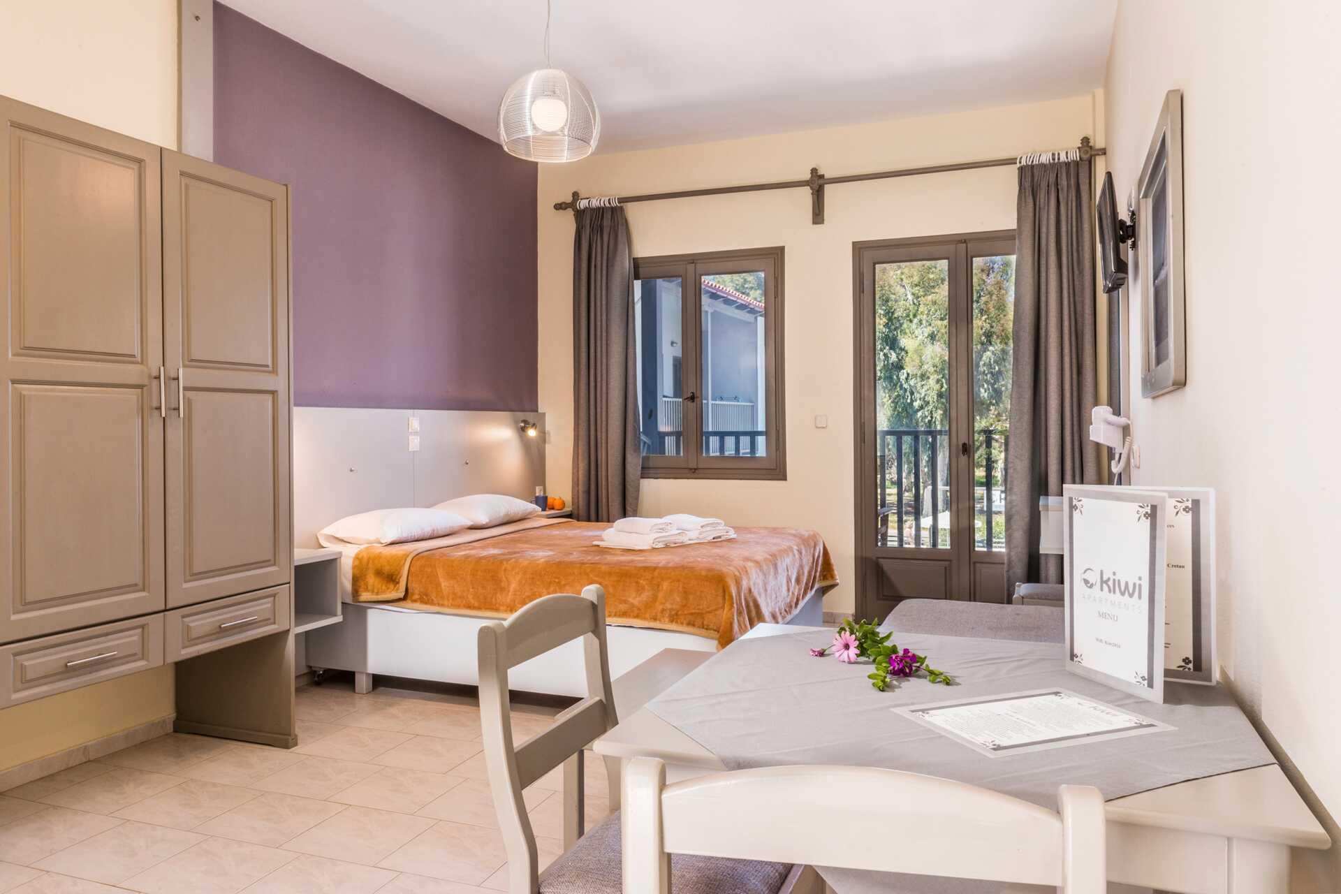 Dicht bij de mooiste baaien van Agii Apostoli en tussen groene pijnbomen ligt het appartementenhotel Kiwi op Kreta. Hier wacht een mooi zwembad, de nabijheid van het strand en diverse restaurants op loopafstand op je. De gezellige appartementen hebben alles wat je nodig hebt om voor jezelf te zorgen op vakantie, en de bakker in het dorp verkoopt brood voor het ontbijt.