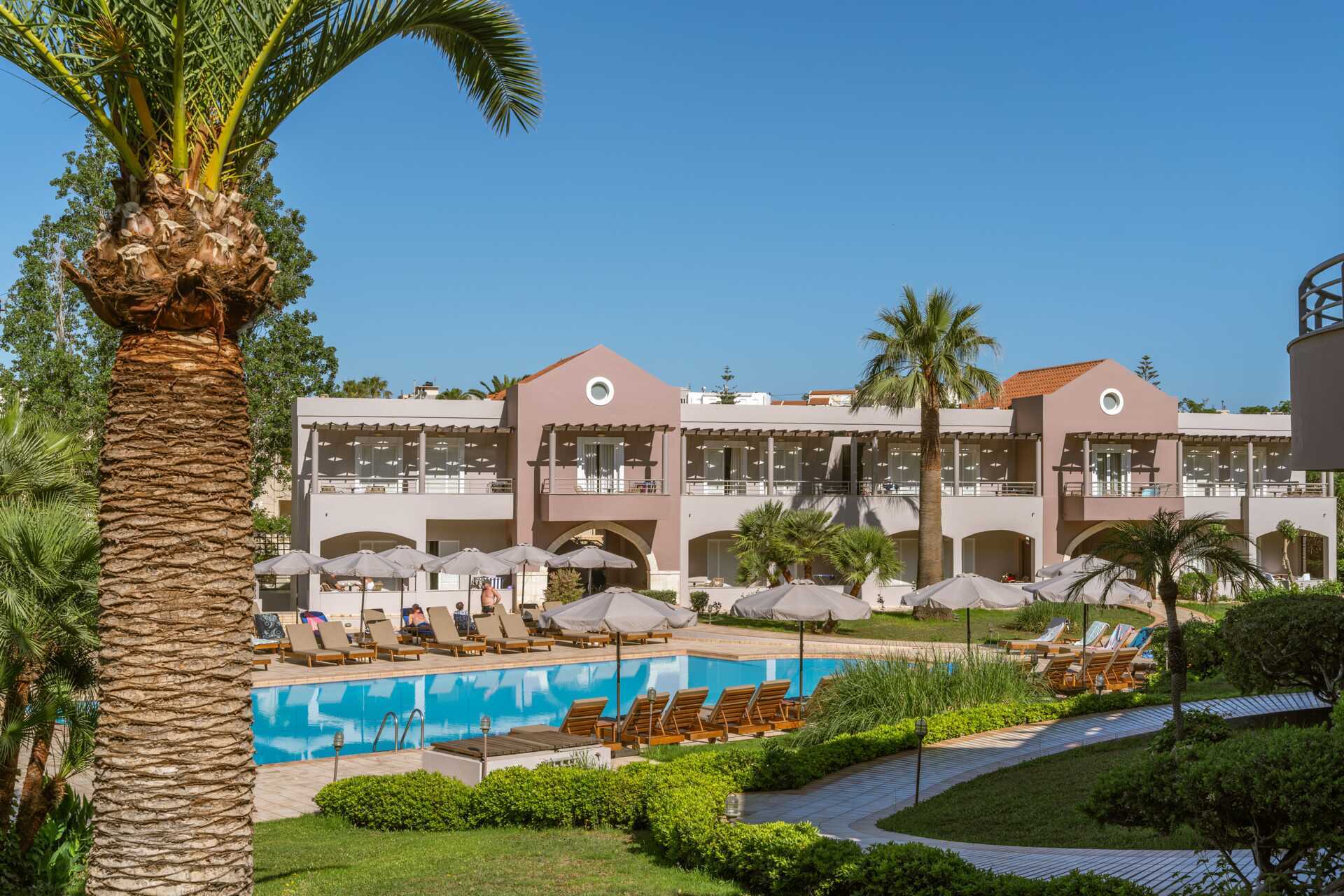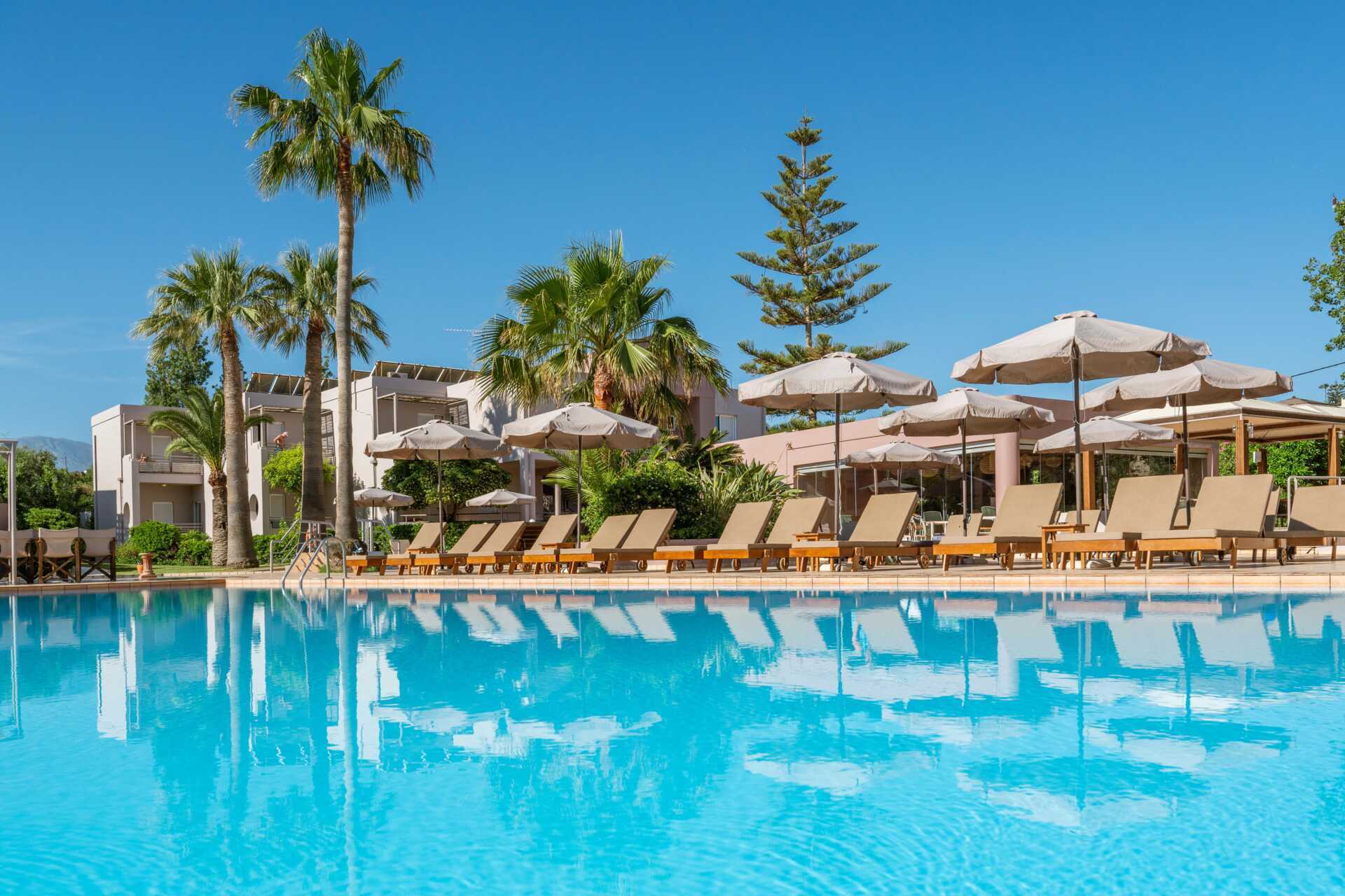 De zonnebedden aan het zwembad, de vriendelijkheid van het personeel, de ruimte van de kamer.
