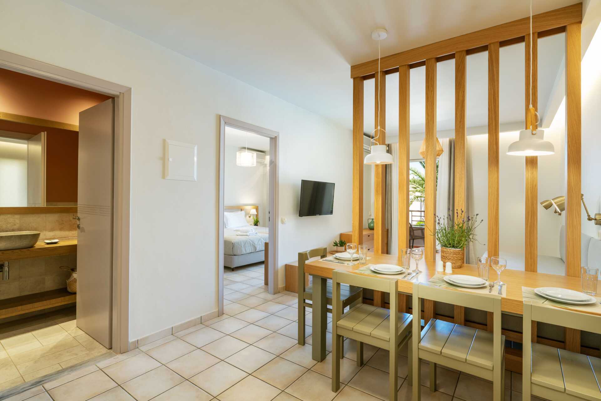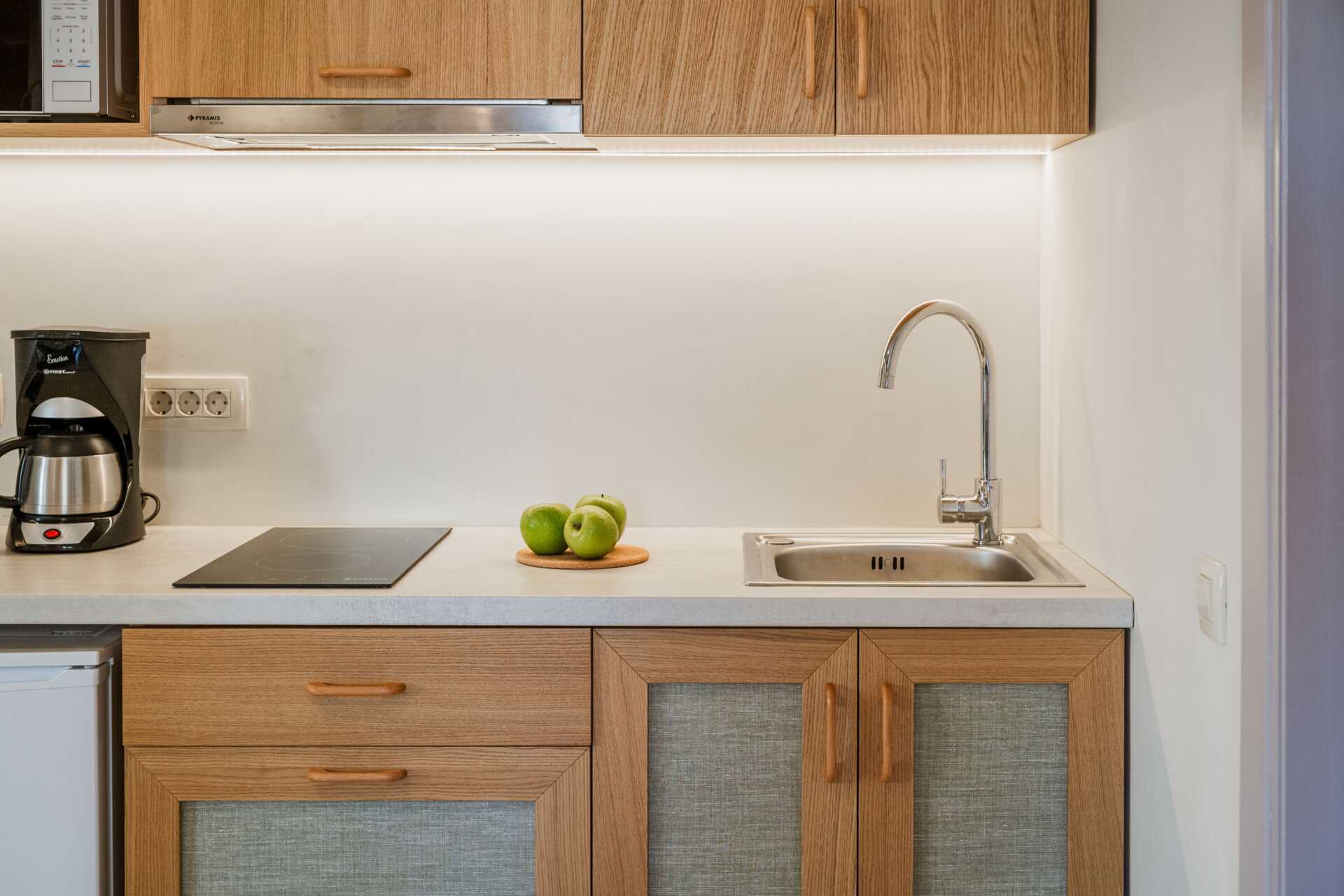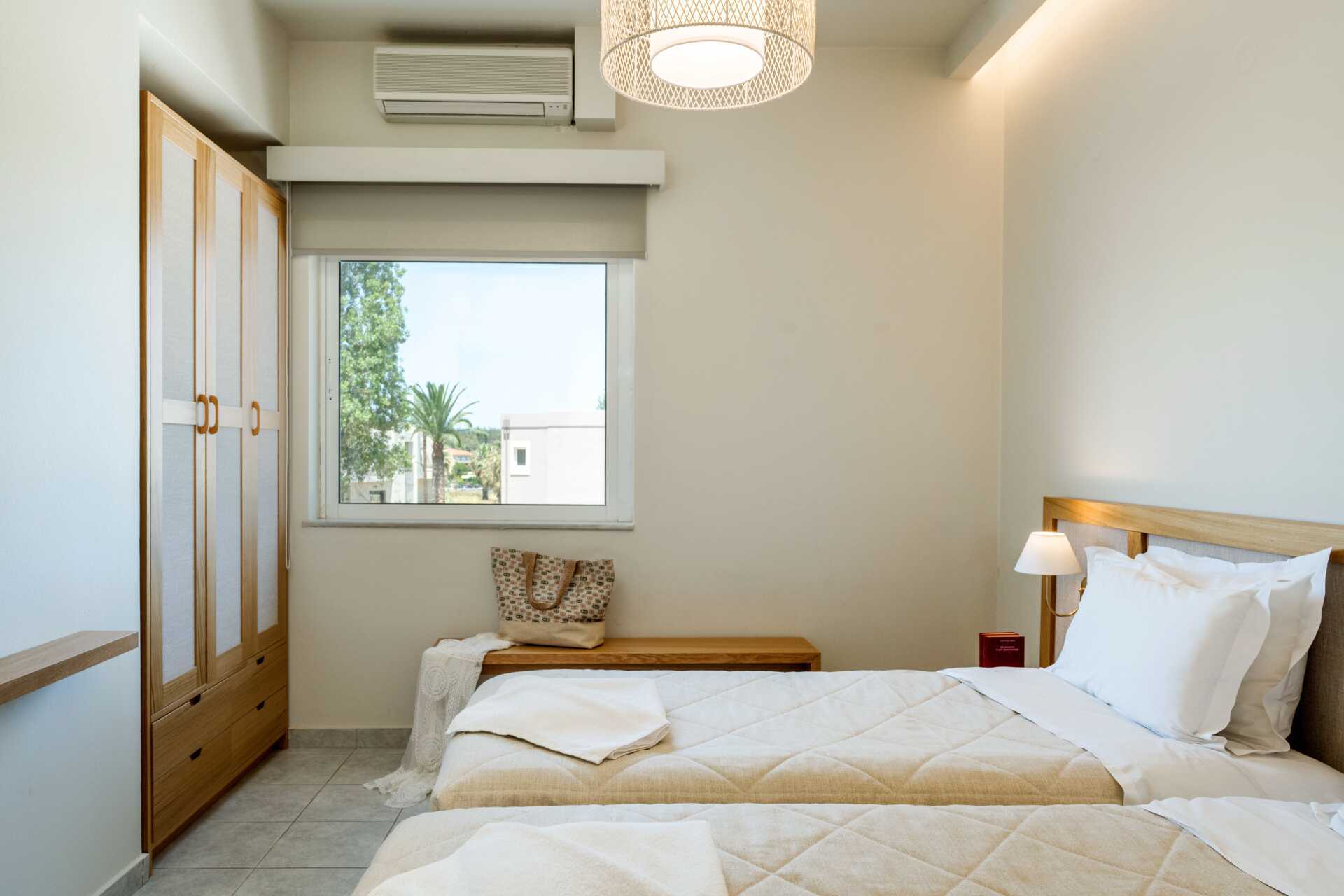 Tweekamerappartement met balkon of balkon op de begane grond, sommige met uitzicht op het zwembad. Slaapkamer en gecombineerde woonkamer met kitchenette. Een tweepersoonsbed of twee eenpersoonsbedden. Mogelijkheid voor extra bedden in slaapbank. Minikeuken met kookplaten, koelkast, koffiezetapparaat, tosti-ijzer en basiskeukenuitrusting. Wifi, airconditioning en kluisje inbegrepen. Tv met lokale zenders. Föhn. Badkamer met douche en toilet. Schoonmaak 6 keer/week.