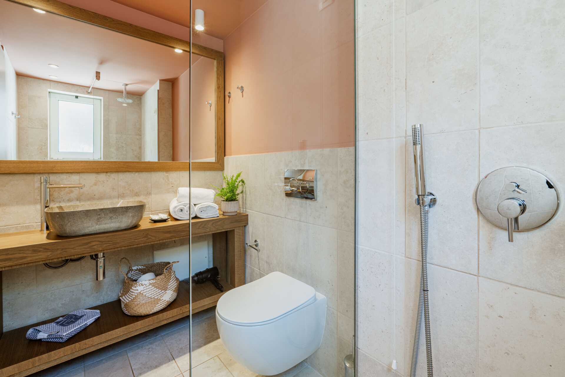 Driekamerappartement met balkon. Twee slaapkamers, twee badkamers en een gecombineerde woonkamer met kitchenette. In elke slaapkamer een tweepersoonsbed of twee eenpersoonsbedden. Mogelijkheid voor extra bedden in slaapbank. Minikeuken met kookplaten, koelkast, koffiezetapparaat, tosti-ijzer en basiskeukenuitrusting. Wifi, airconditioning en kluisje inbegrepen. Tv met lokale zenders. Föhn. Badkamer met douche en toilet. Schoonmaak 6 keer/week.