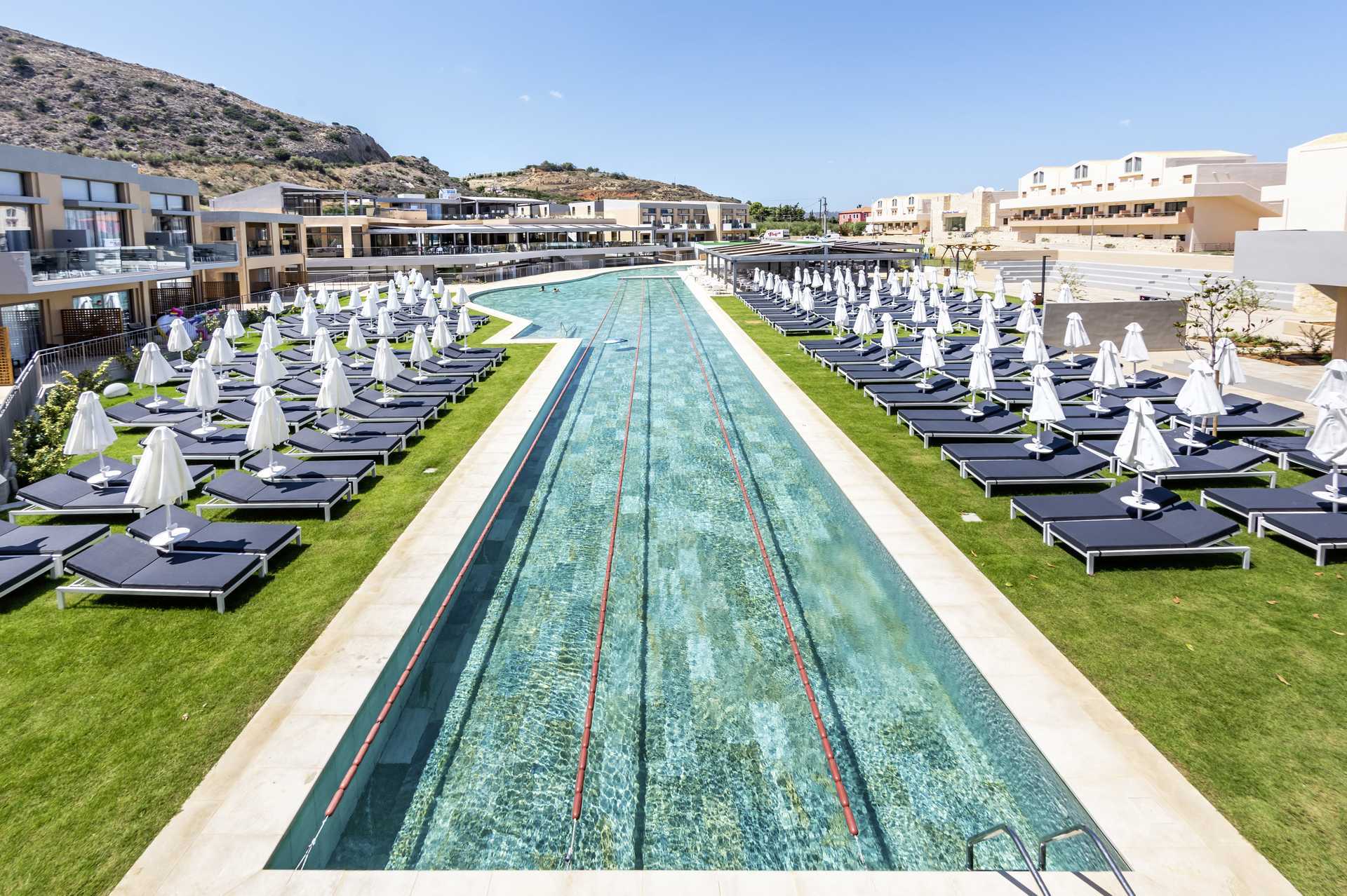 Elk hotelgedeelte beschikt over een eigen groot zwembadgedeelte met een groot zwembad, waarvan er één direct aan het strand ligt. Elk zwembadgedeelte beschikt over een kinderbad en één heeft een bad met glijbanen voor de allerkleinsten. De zwembaden in de Zuidvleugel en de Zwembadvleugel zijn verwarmd van april tot half mei en van half september tot november. In de Zuidvleugel zijn in het 50-meterbad drie trainingsbanen aanwezig. Ligstoelen, parasols, badlakens en strandlakens zijn inbegrepen. Poolbar met lichte snacks en versnaperingen bij een van de zwembaden. Er is ook een overdekt zwembad in het hotel. Het is verwarmd in de periodes van april tot en met mei en in september en november.
