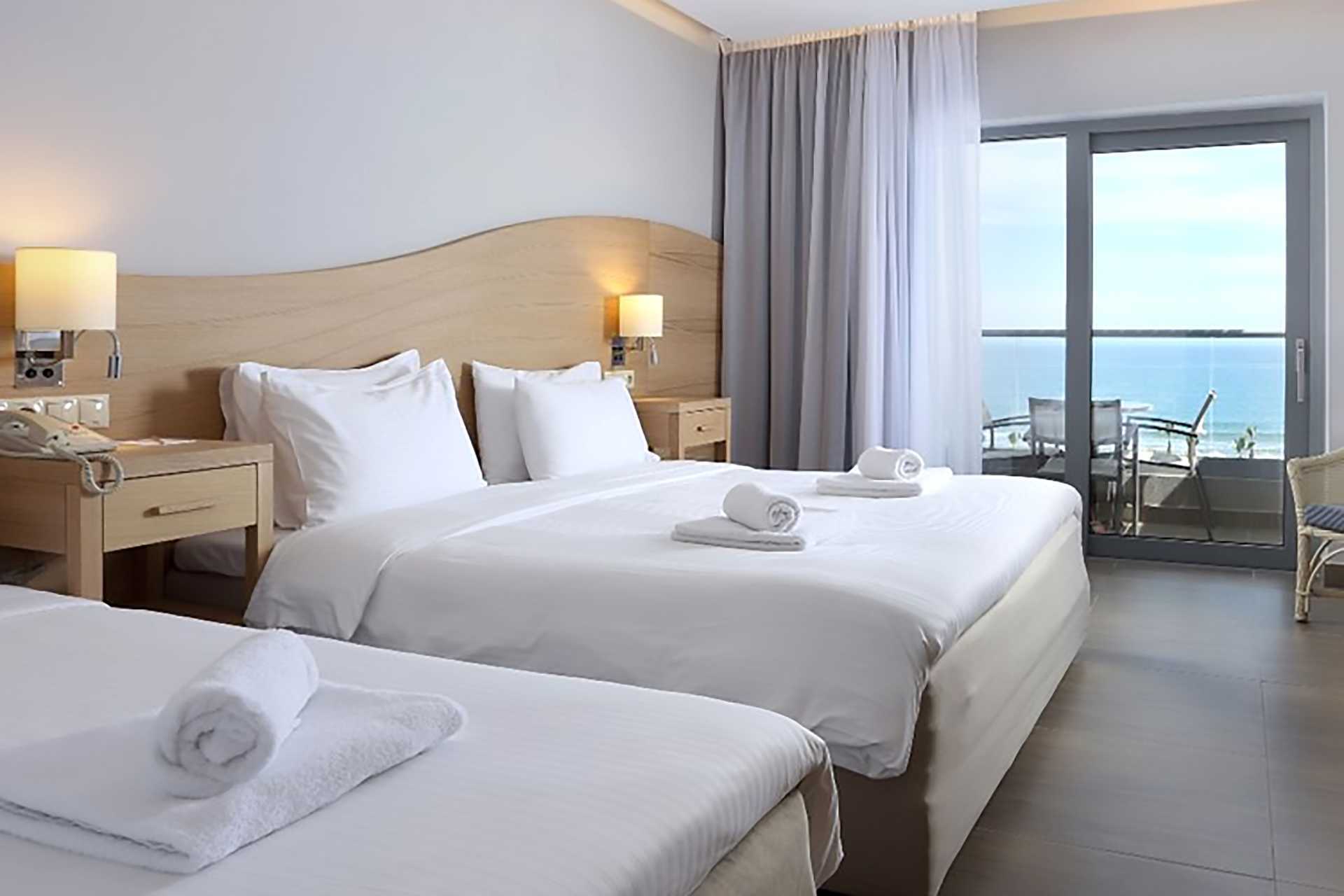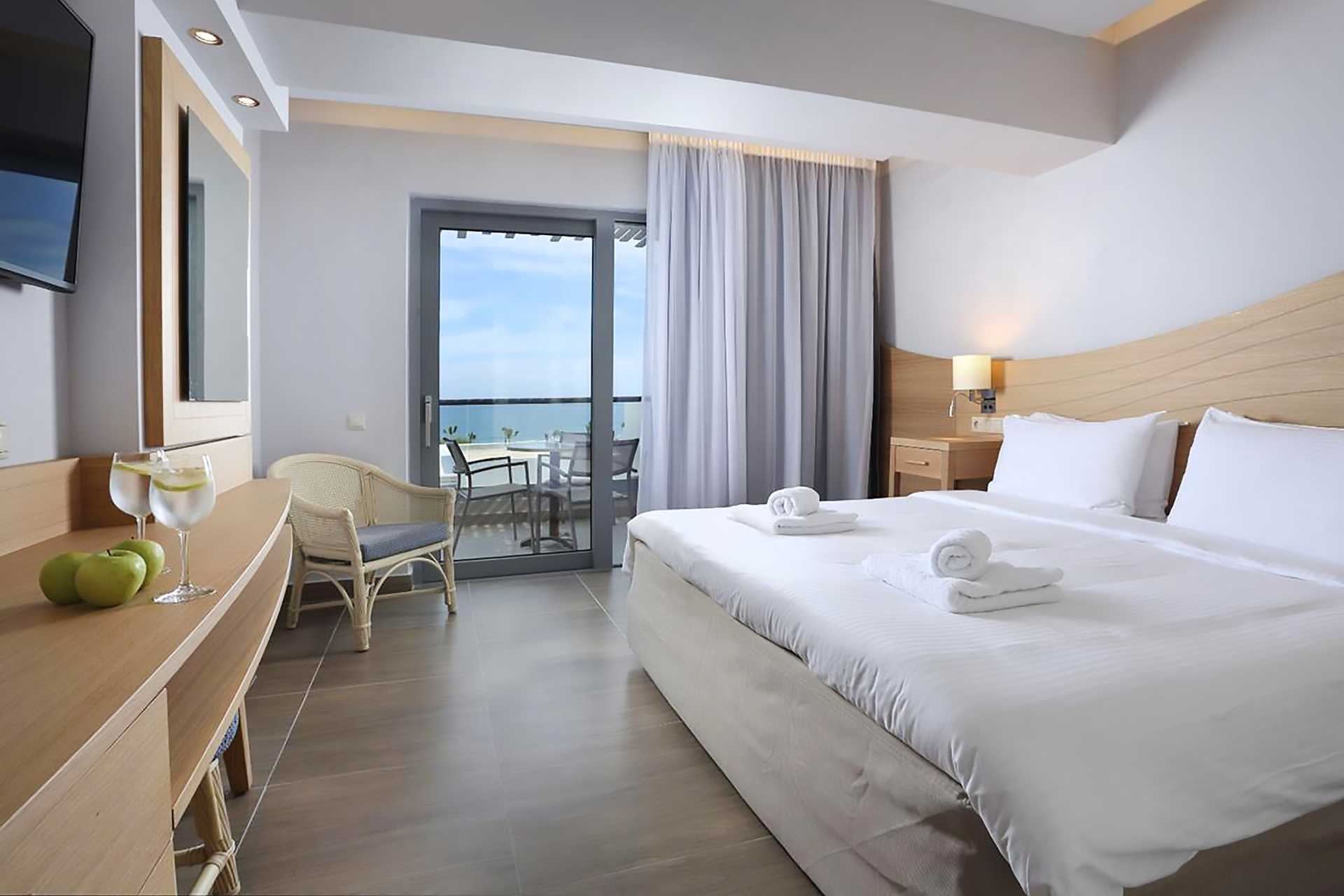 Tweepersoonskamer met balkon en uitzicht op zee. Een tweepersoonsbed of twee eenpersoonsbedden. Mogelijkheid voor een extra bed in een eenpersoonsbed. Wifi, airconditioning en kluisje inbegrepen. Koelkast. Magnetron. Nespresso-apparaat - capsules inbegrepen en elke dag bijgevuld. Tv met internationale zenders. Strijkijzer en strijkplank. Föhn. Badkamer met douche en toilet. Schoonmaak 7 keer/week. Kinderen jonger dan twee jaar zijn inbegrepen in het maximale aantal personen in de kamer.