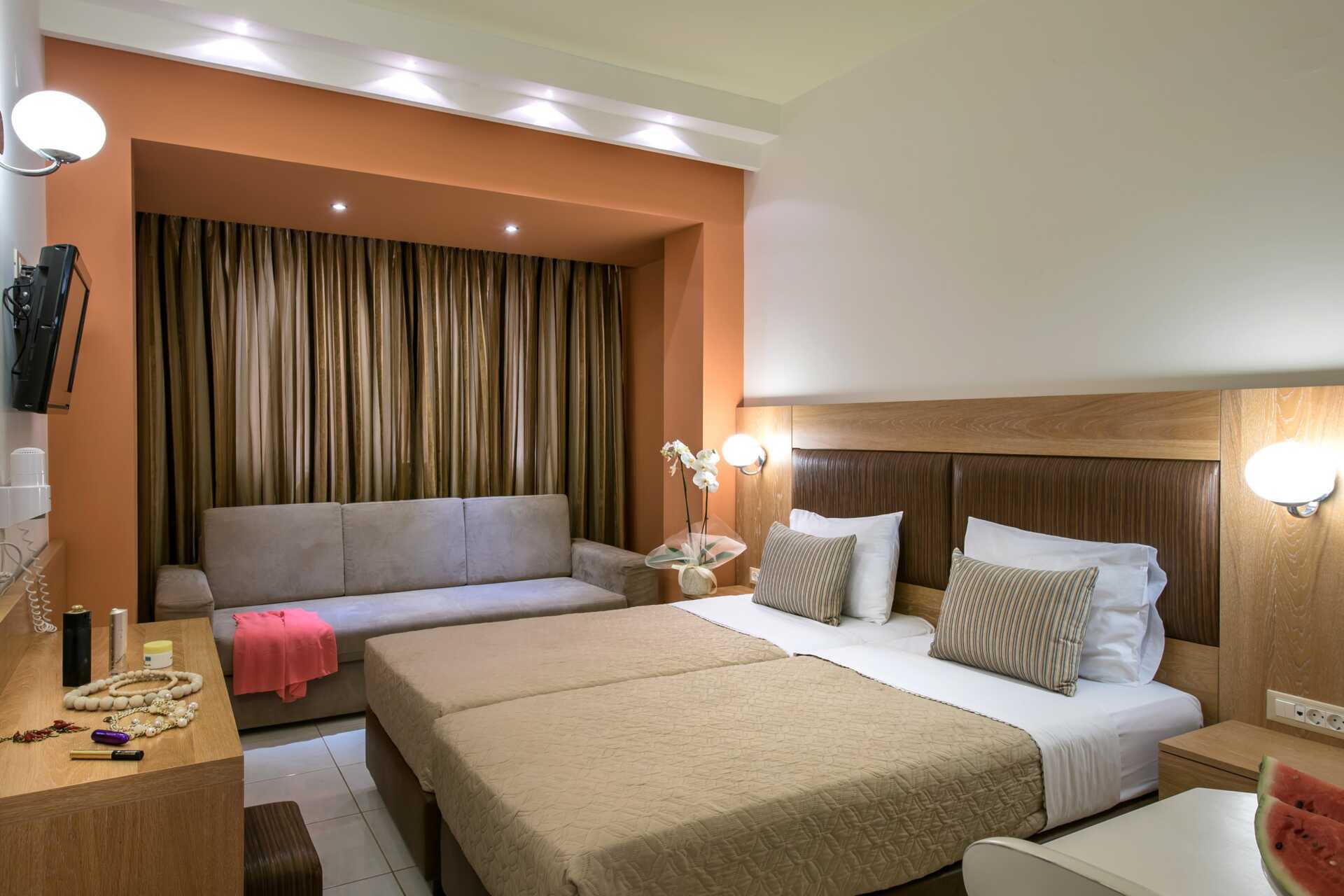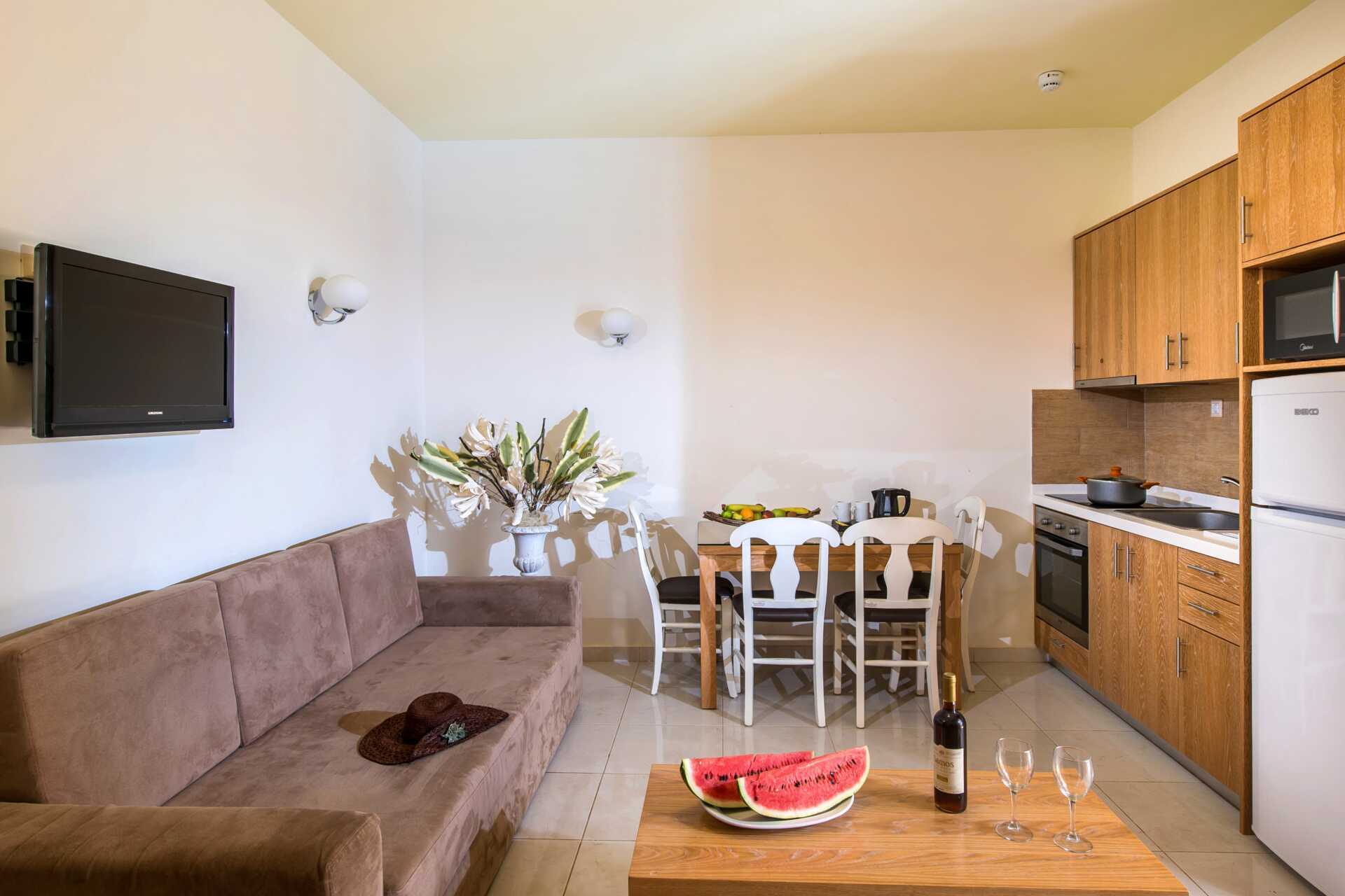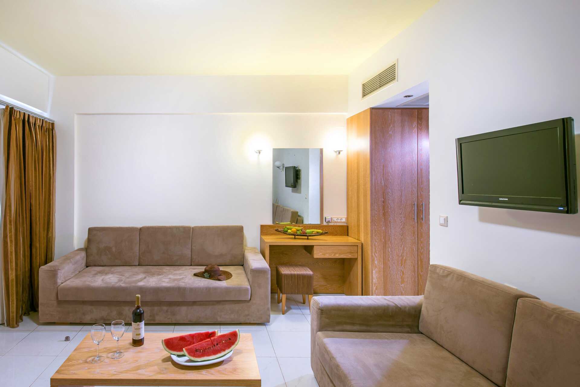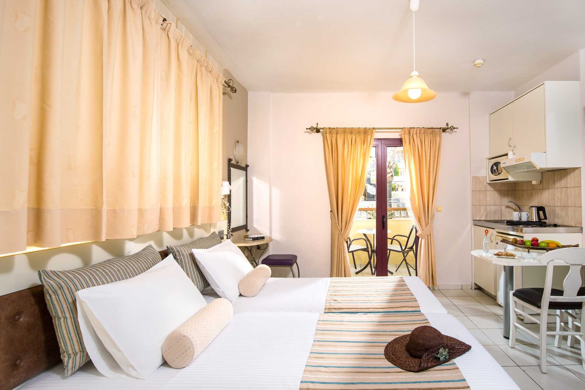 Superior studio met balkon of terras. Slaapkamer gecombineerd met minikeuken. Twee eenpersoonsbedden. Mogelijkheid voor extra bed in slaapbank of opklapbed. Minikeuken met kookplaten, koelkast, waterkoker, magnetron en basiskeukengerei. Wifi inbegrepen. Airconditioning en kluisje tegen betaling. Tv met internationale zenders. Föhn. Badkamer met douche en toilet. Schoonmaak 2 keer / week.