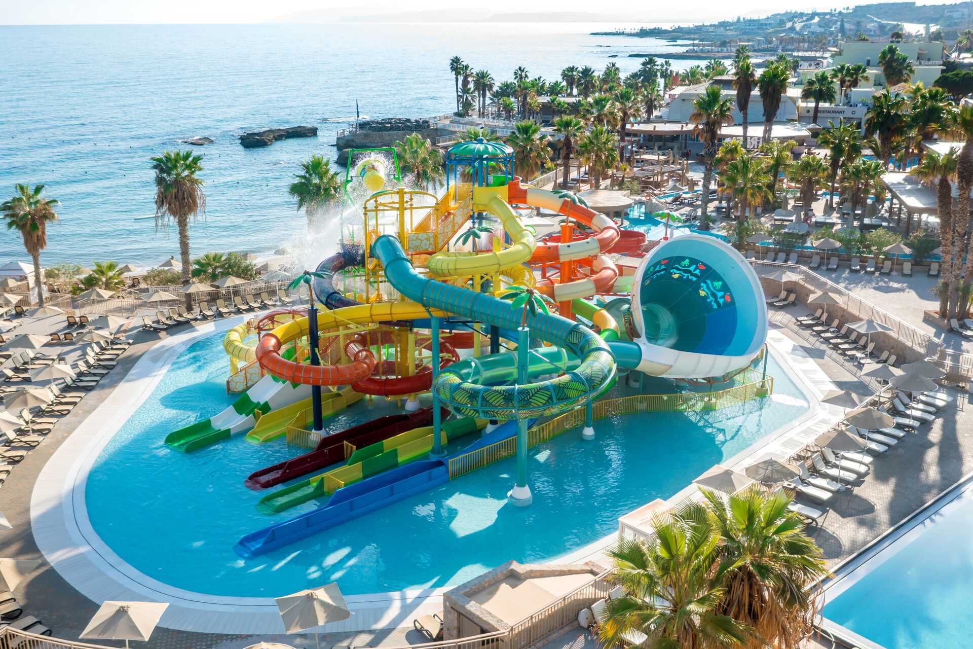 Zwembad, Kinderzwembad, Waterglijbaan, Parasol, Loungestoelen, Handdoeken voor bij het zwembad
