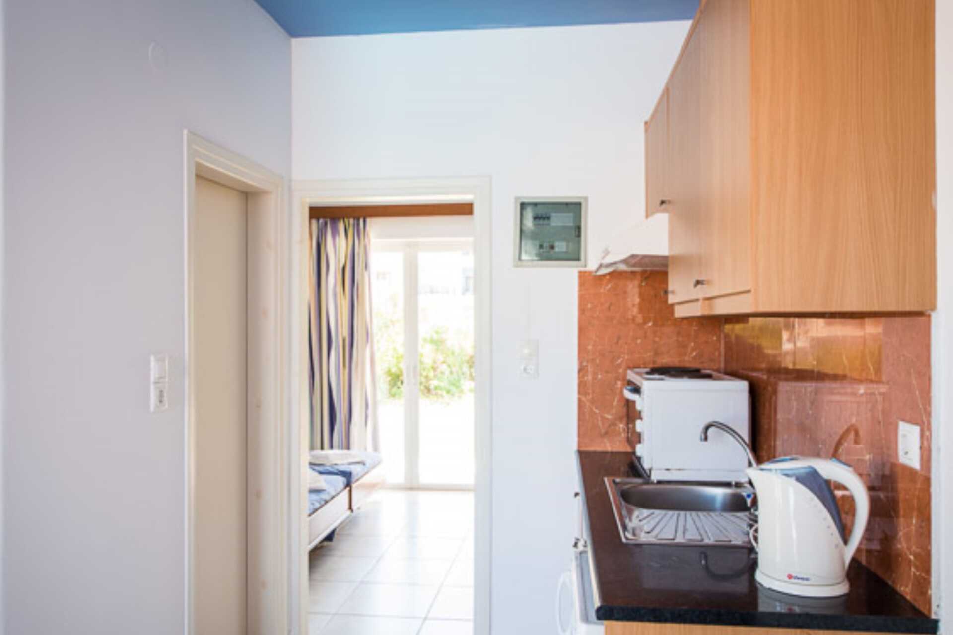 Gerenoveerd tweekamerappartement met balkon of terras. Slaapkamer en gecombineerde woonkamer met kitchenette. Een tweepersoonsbed. Mogelijkheid voor een extra bed in een eenpersoonsbed. Minikeuken met kookplaten, koelkast, broodrooster, koffiezetapparaat, waterkoker, magnetron en basis keukenapparatuur. Wifi en kluisje inbegrepen. Airconditioning tegen betaling. Tv met internationale zenders. Föhn. Badkamer met douche en toilet. Schoonmaak 7 keer/week.