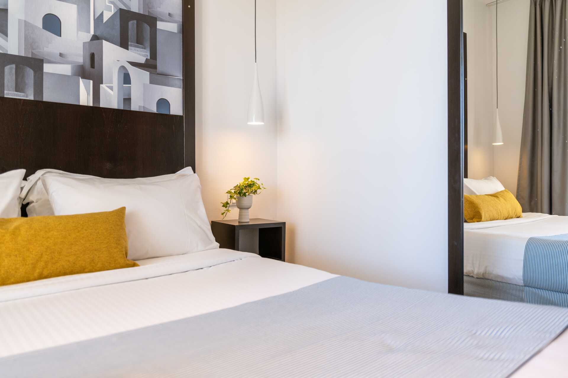 Tweekamerappartement met balkon, sommige met uitzicht op het zwembad. De appartementen bevinden zich in het Olympus-gedeelte van het hotel. Slaapkamer en gecombineerde woonkamer met kitchenette. Een tweepersoonsbed in elke slaapkamer. Mogelijkheid voor extra bedden in slaapbank. Minikeuken met koelkast, kookplaat, waterkoker en eenvoudige keukenapparatuur. Wifi, airconditioning en kluis inbegrepen. TV met internationale zenders. Föhn. Badkamer met douche en wc. Schoonmaak 6 keer/week.