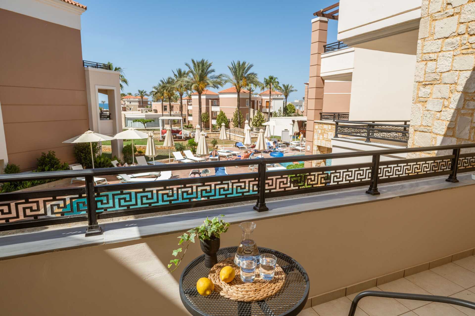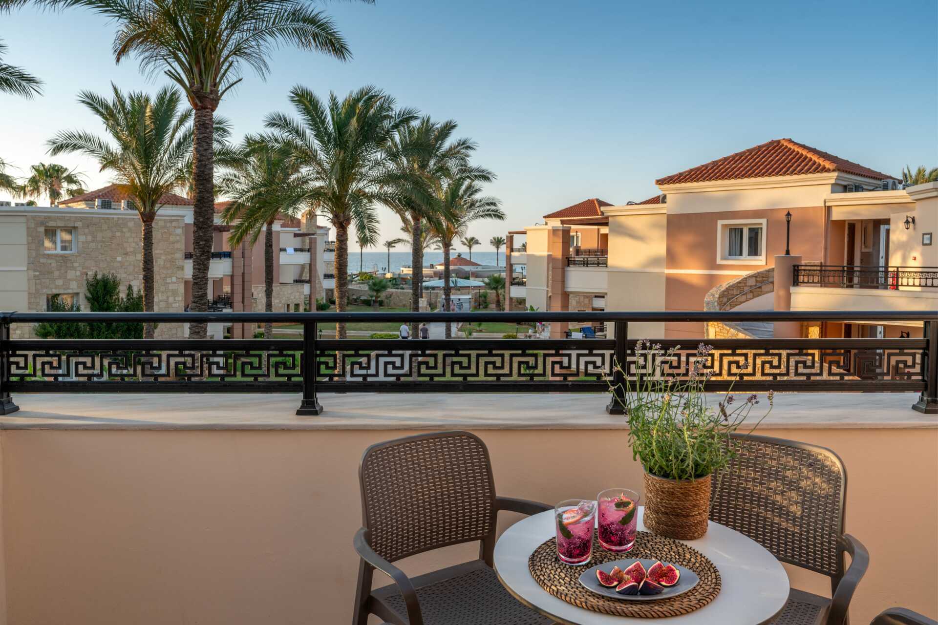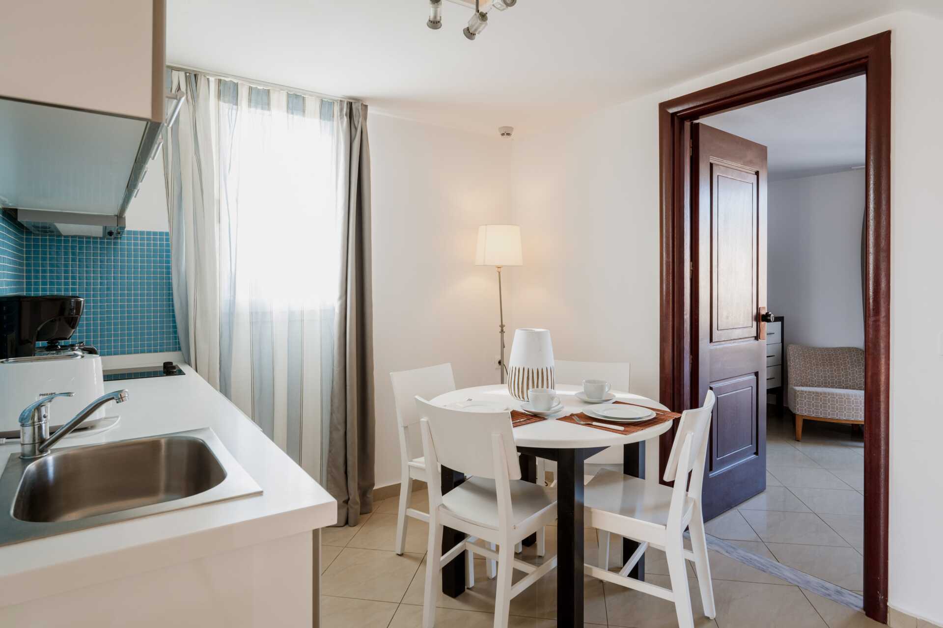 Tweekamerappartement met balkon, deels met zeezicht of beperkt zeezicht. De appartementen bevinden zich in het Aphrodite-gedeelte van het hotel, dichter bij de zee. De kamers voor maximaal drie personen zijn circa 28-30 vierkante meter, de kamers voor maximaal vier personen circa 30-40 vierkante meter. Slaapkamer en gecombineerde woonkamer met kitchenette. Een tweepersoonsbed. Mogelijkheid voor extra bedden in slaapbank. Minikeuken met koelkast, kookplaat, waterkoker en eenvoudige keukenapparatuur. Wifi, airconditioning en kluis inbegrepen. TV met internationale zenders. Föhn. Badkamer met douche en wc. Schoonmaak 6 keer/week.