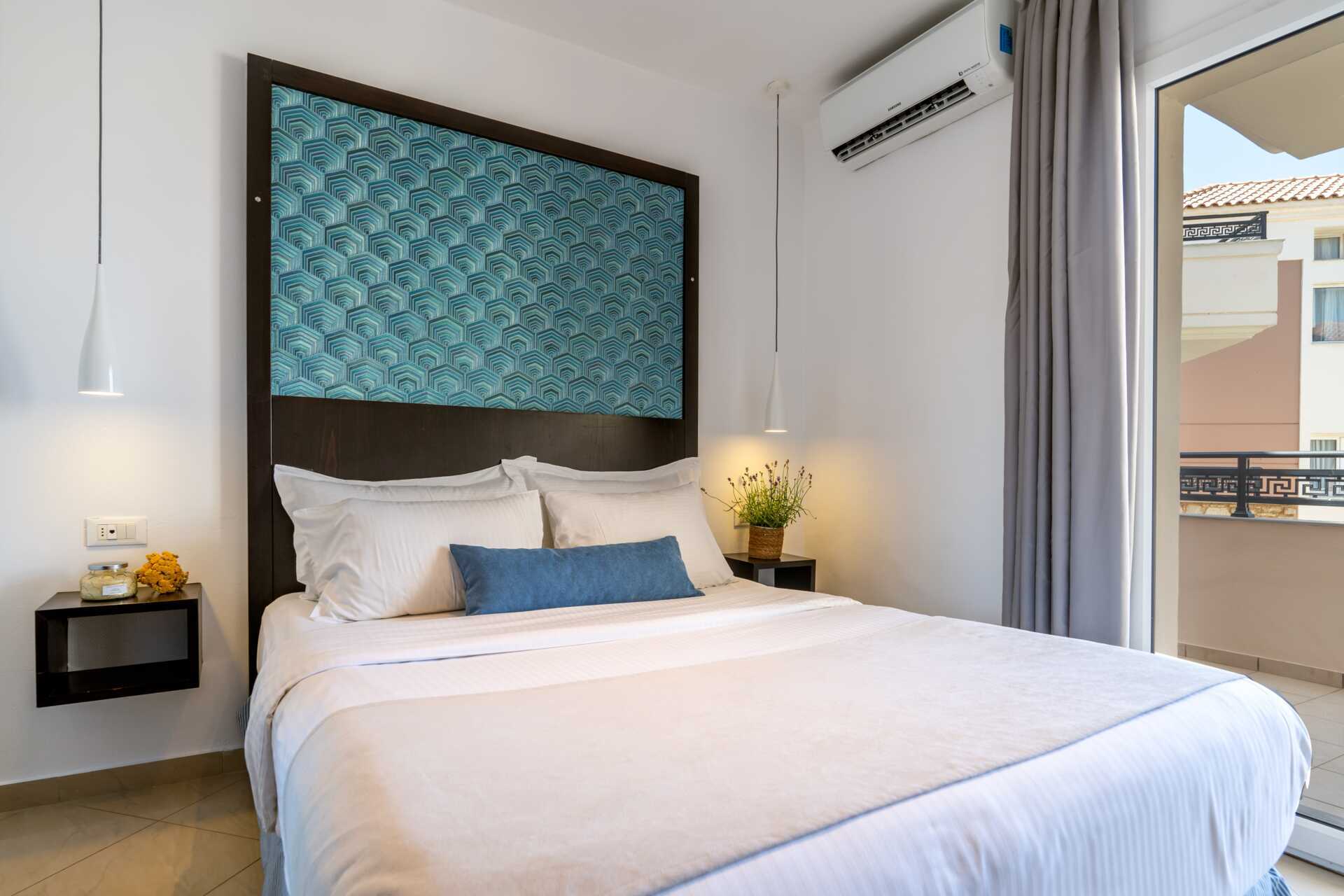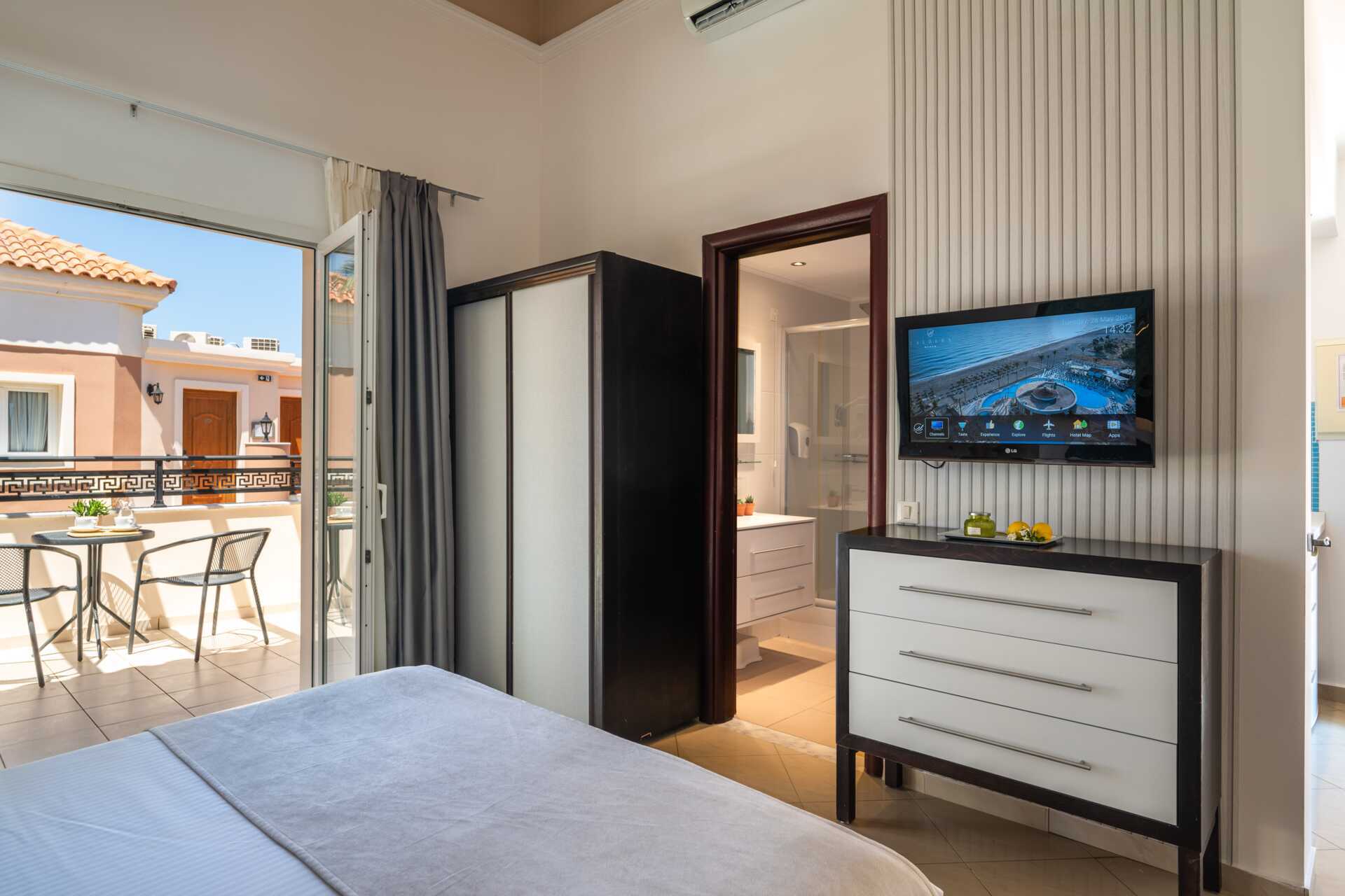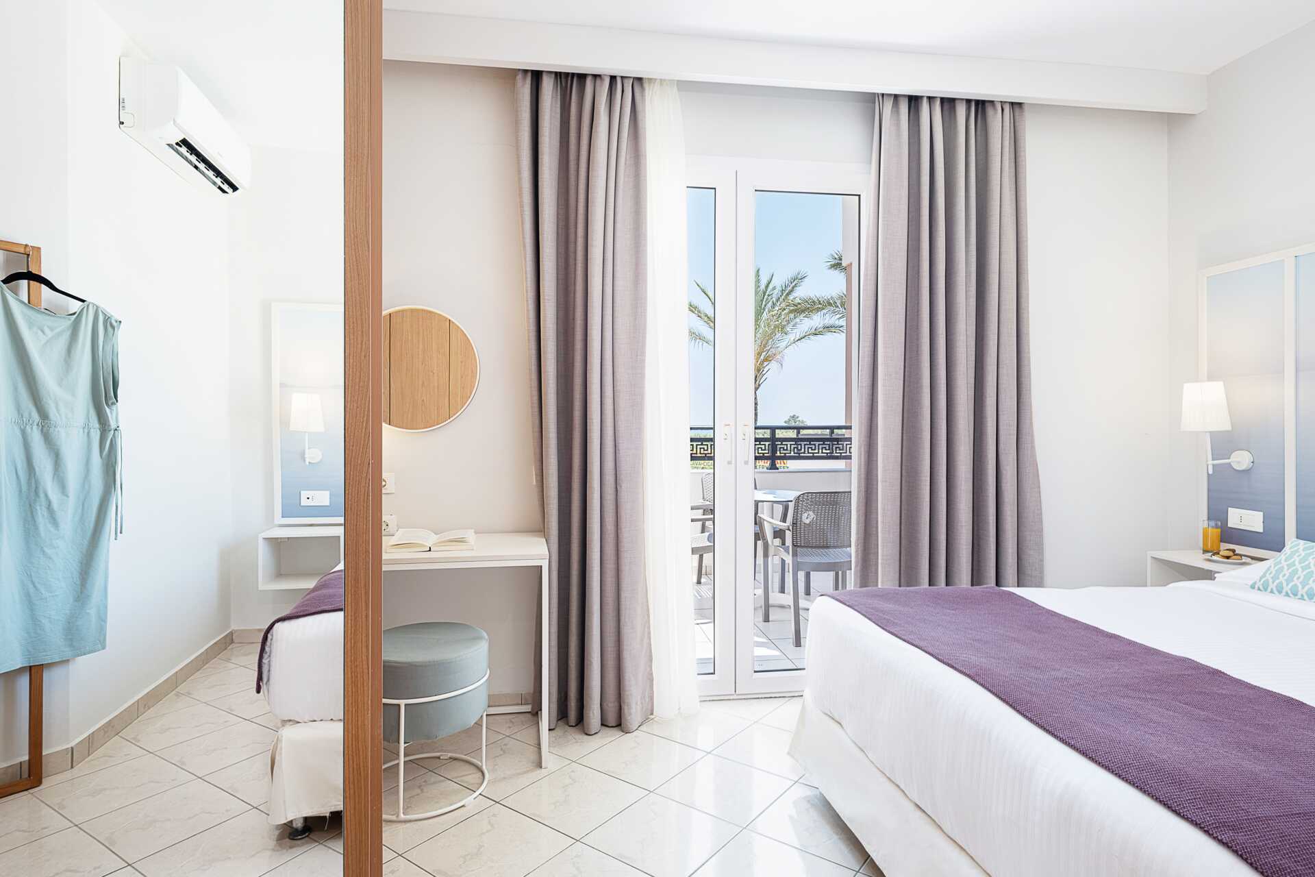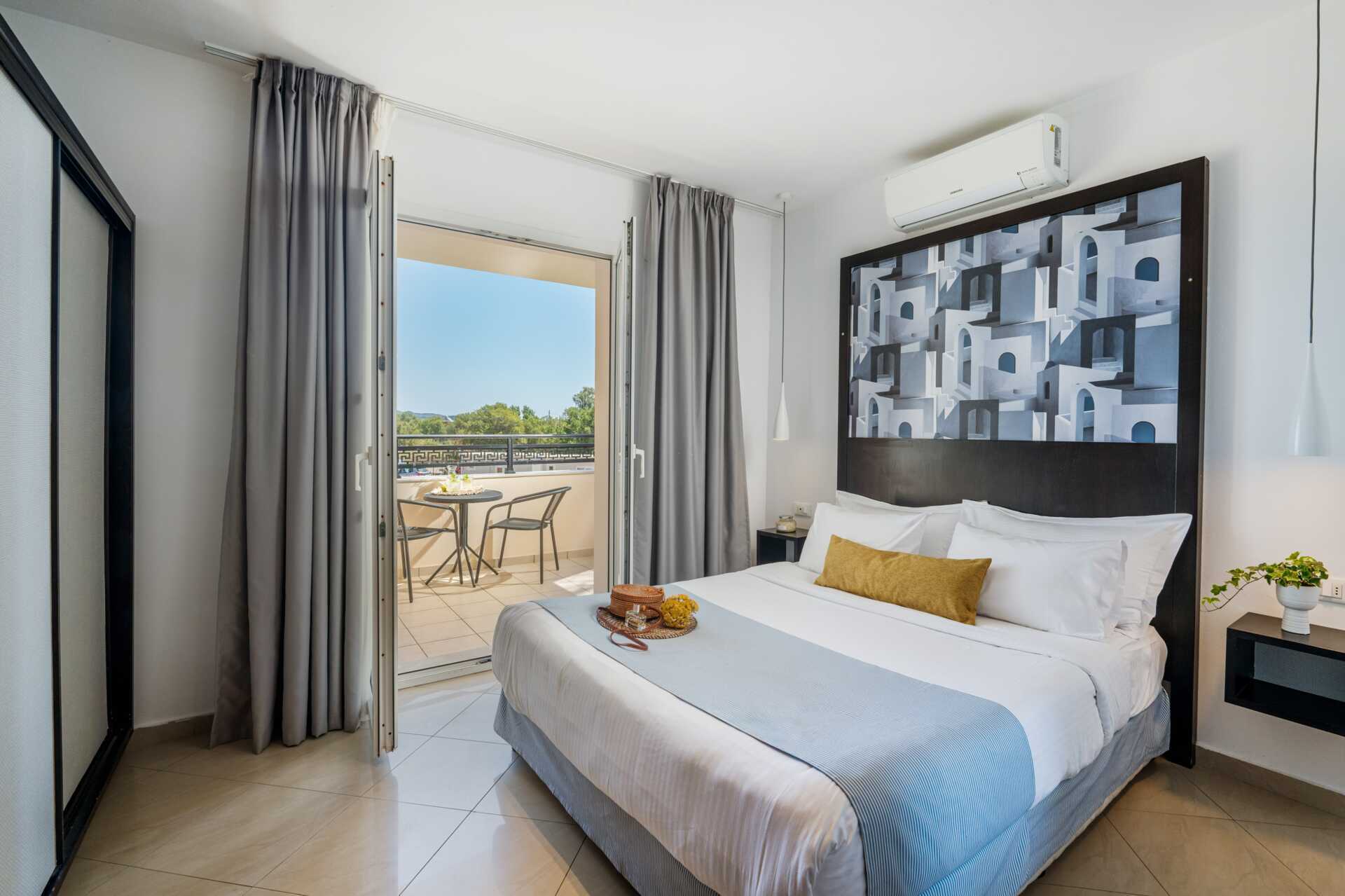 Tweekamerappartement met balkon, deels met zeezicht of beperkt zeezicht. De appartementen bevinden zich in het Aphrodite-gedeelte van het hotel, dichter bij de zee. De kamers voor maximaal drie personen zijn circa 28-30 vierkante meter, de kamers voor maximaal vier personen circa 30-40 vierkante meter. Slaapkamer en gecombineerde woonkamer met kitchenette. Een tweepersoonsbed. Mogelijkheid voor extra bedden in slaapbank. Minikeuken met koelkast, kookplaat, waterkoker en eenvoudige keukenapparatuur. Wifi, airconditioning en kluis inbegrepen. TV met internationale zenders. Föhn. Badkamer met douche en wc. Schoonmaak 6 keer/week.