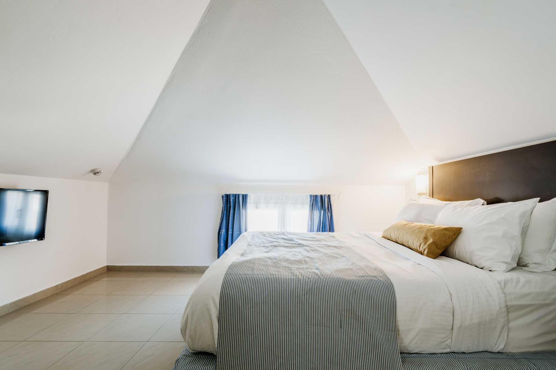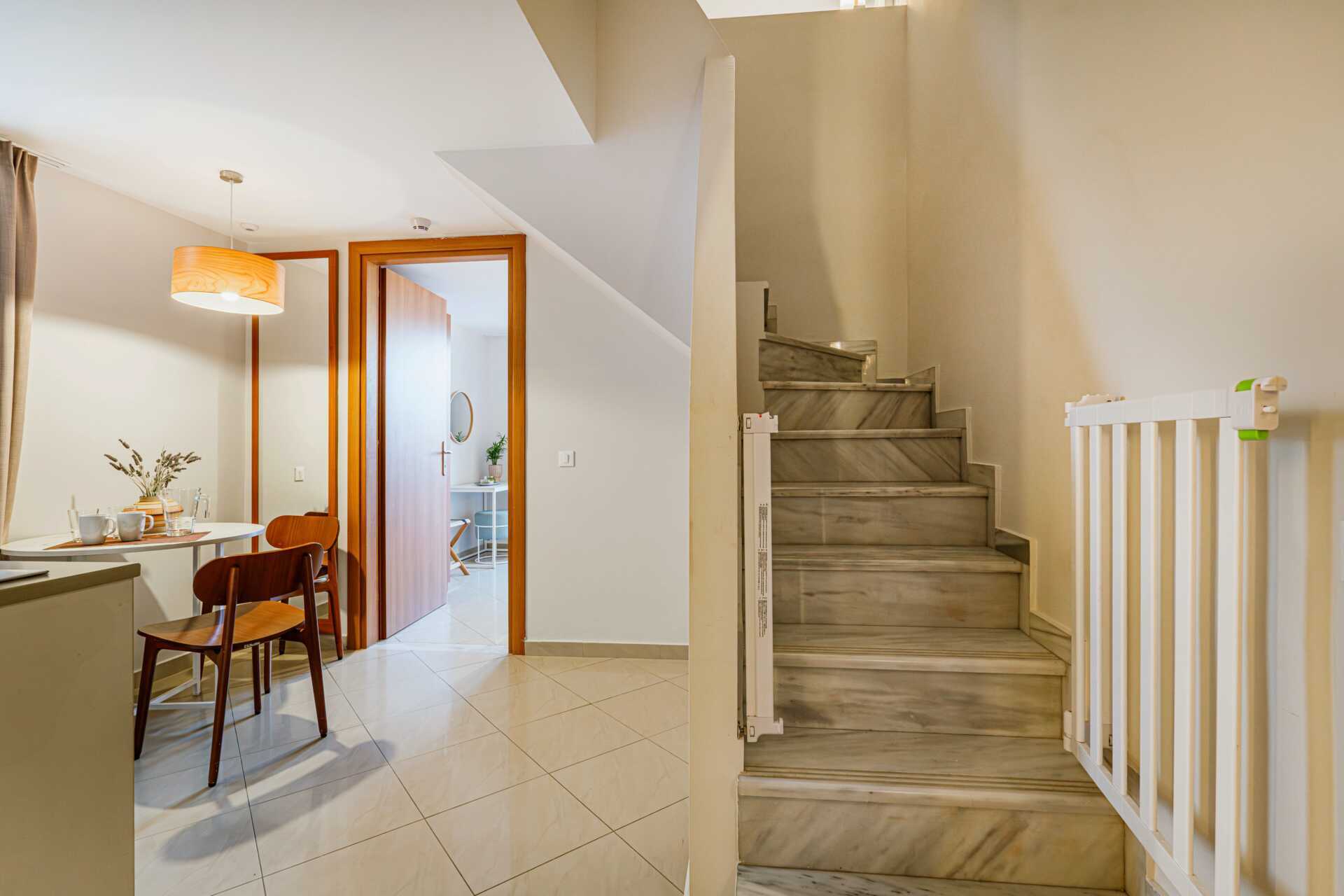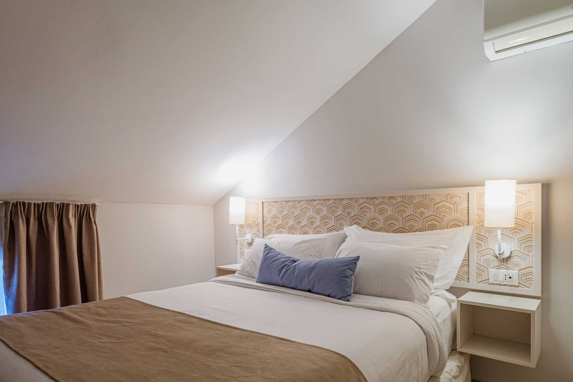 Tweekamerappartement in maisonnette met balkon of terras. Dit appartementtype is beschikbaar in zowel het Olympus gedeelte als het Aphrodite gedeelte, dichter bij de zee. Op de entreeverdieping bevindt zich een kitchenette en een slaapkamer met een tweepersoonsbed. Boven is er de mogelijkheid voor extra bedden op slaapbanken op een slaapzolder. Minikeuken met koelkast, kookplaat, waterkoker en eenvoudige keukenapparatuur. Wifi, airconditioning en kluis inbegrepen. Televisie met internationale zenders. Föhn. Badkamer met douche en wc. Schoonmaak 6 keer/week.